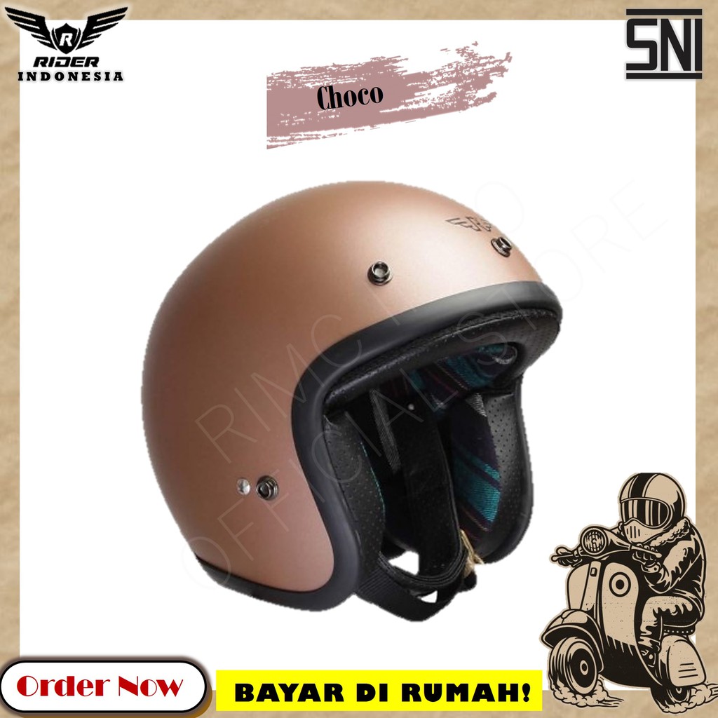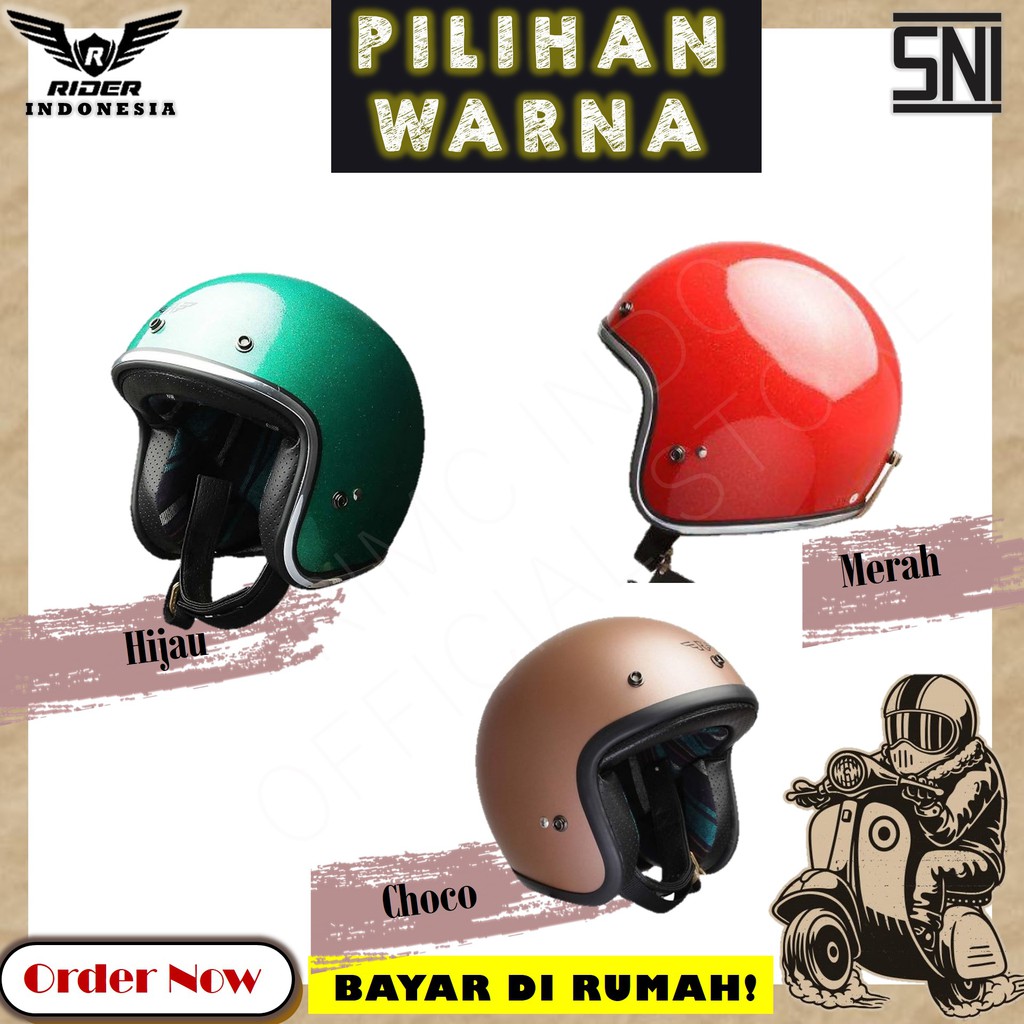 Helem Helm Rimc Smith Matte Choco Green Red Helmet Motor Premium Bogo Dewasa Classic Retro Original