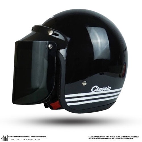 Helm Bogo Classic Dewasa Hitam Glosy Kaca Datar/Helm Bogo Retro Classic SNI