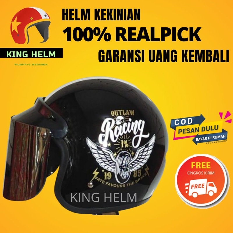 Helm Bogo Dewasa Half Face Hlm Bogo Jadul Hlem Unik Slim Head Cowok Motor Vespa Matic Pria Kekinian