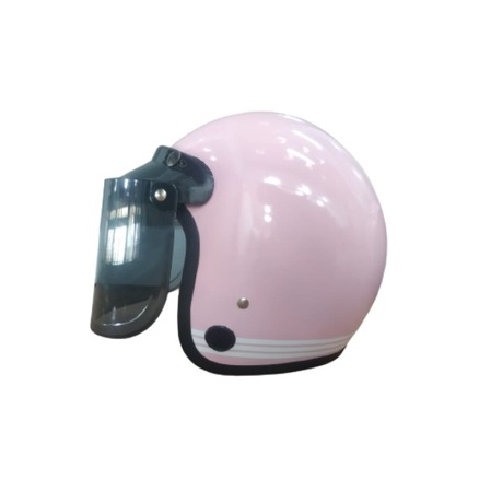 Helm Bogo/Helm Retro ANT Line Pink + Kaca Datar
