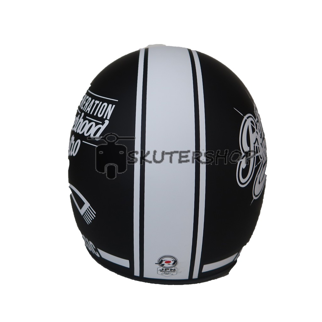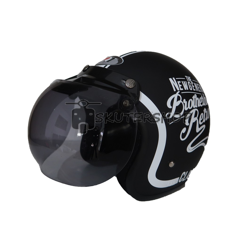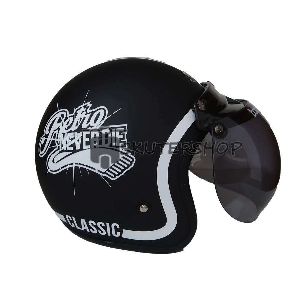 Helm Bogo JPN Retro SNI Klasik Jap Style Vintage Neverdie Hitam Doff Motif Putih Kaca Bogo Original