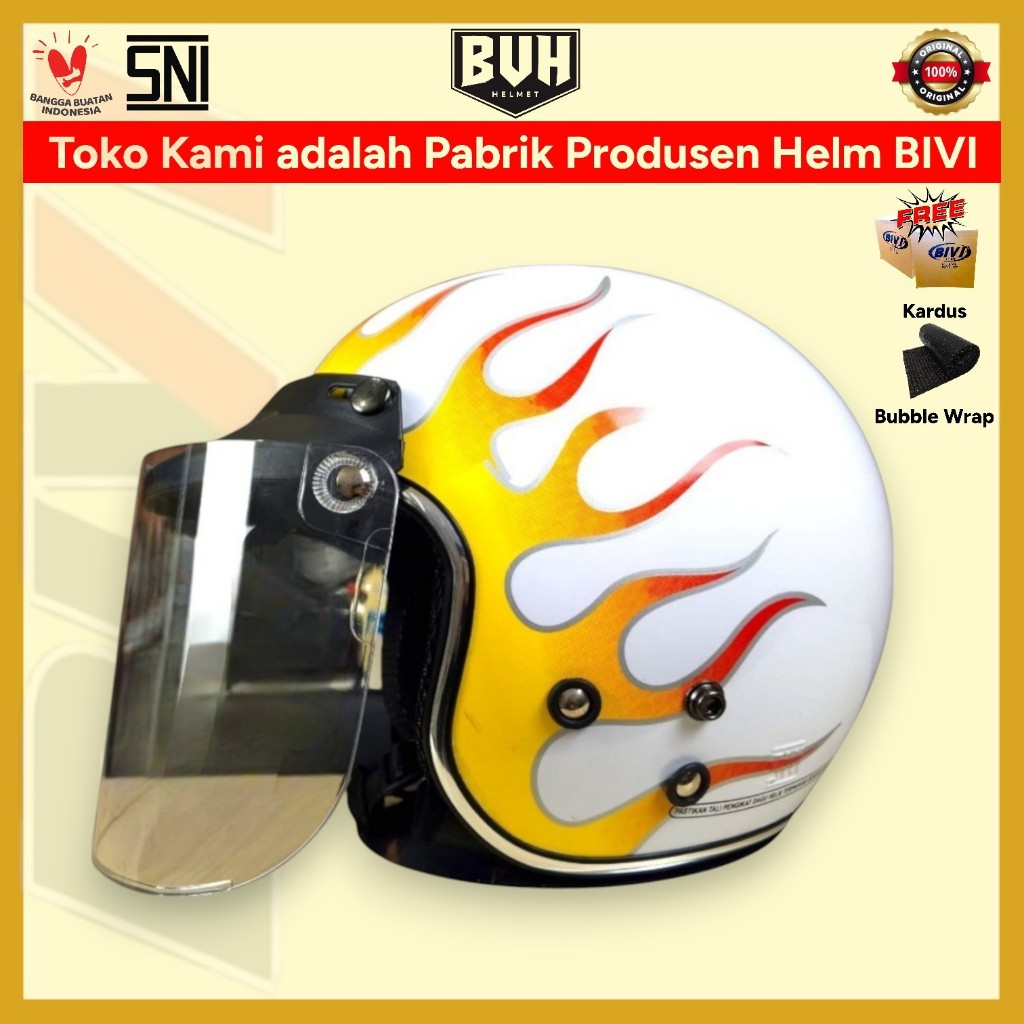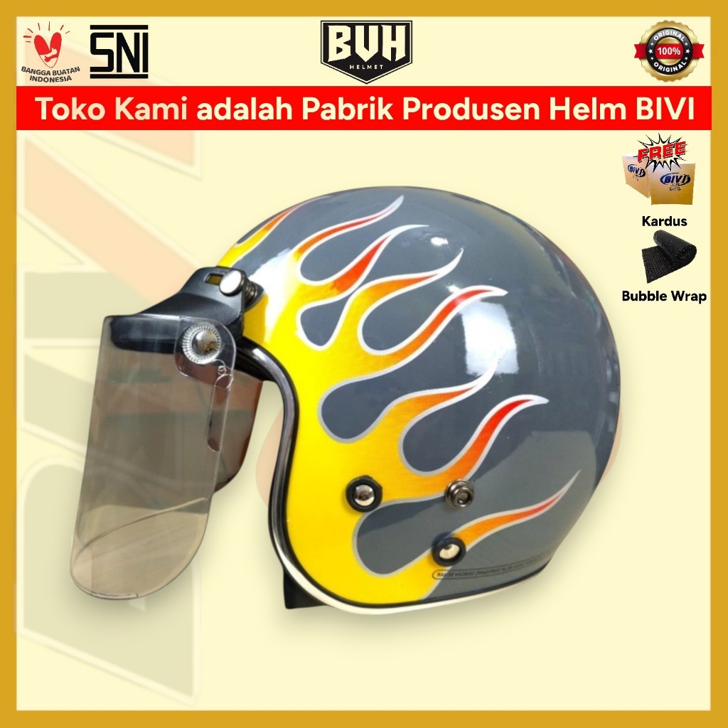 Helm Bogo Motif Api List Chrome SNI BIVI Retro Half Face Hijab Dewasa