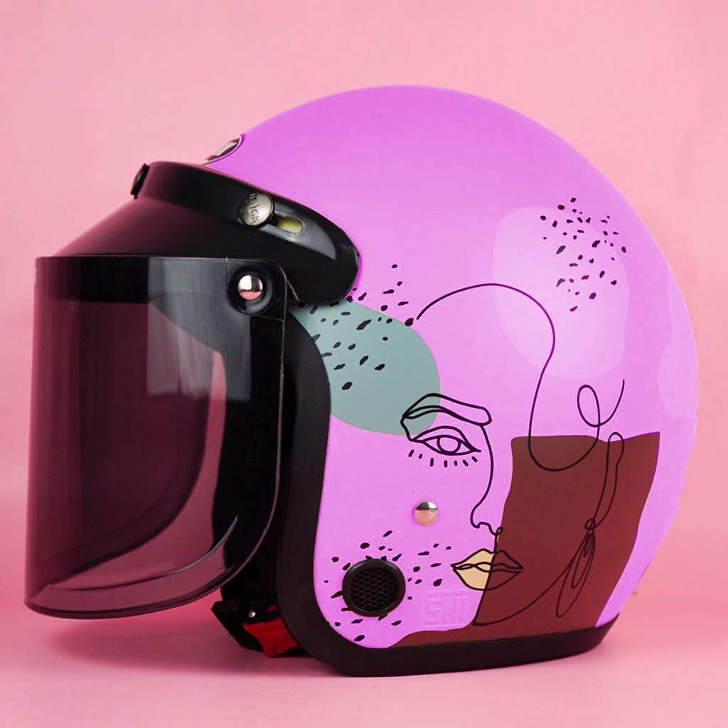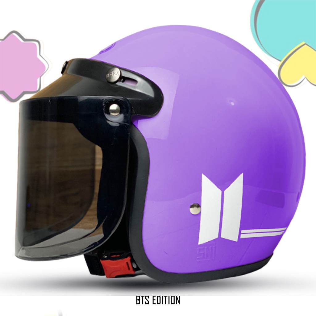 Helm Bogo Motif BTS / Helm Bogo Retro Dewasa SNI Kaca Datar Kaca Cembung COD
