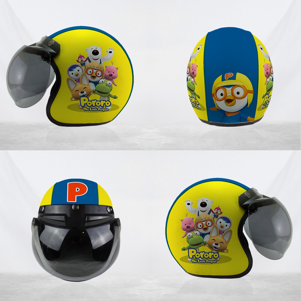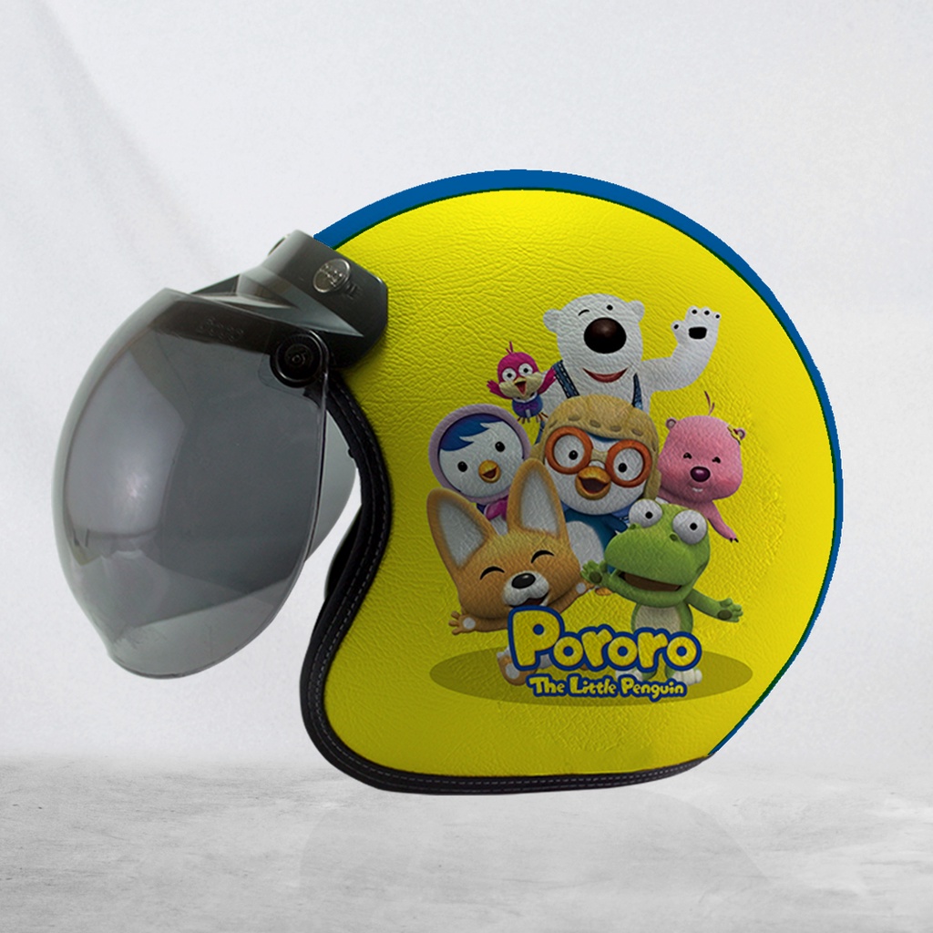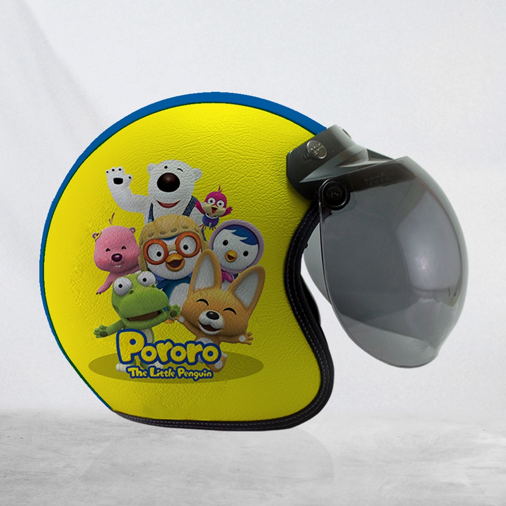 Helm Bogo Retro Kulit Pororo The Little Pinguin Dewasa/Anak-anak Free Tambah Nama