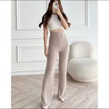 Celana Fit And Flare Pants Cutbray Scuba Pinggang Highwaist
