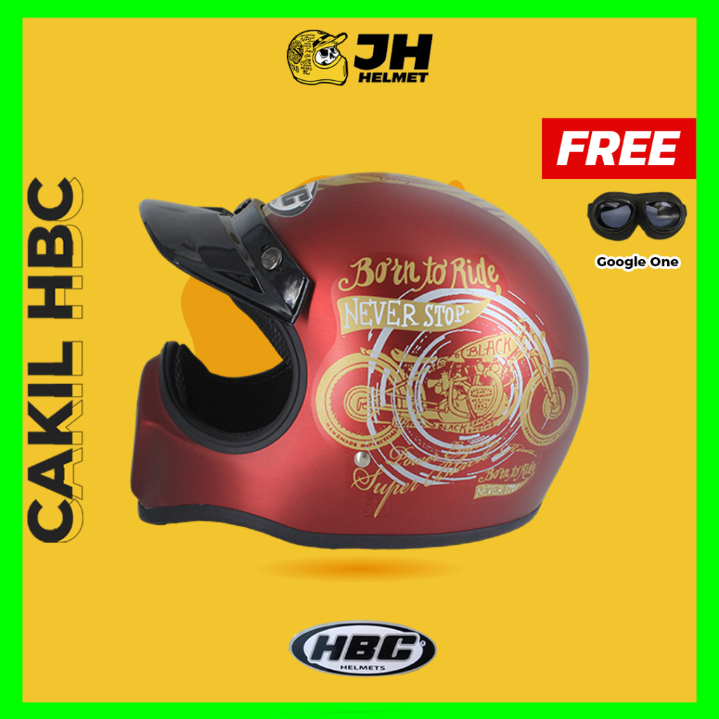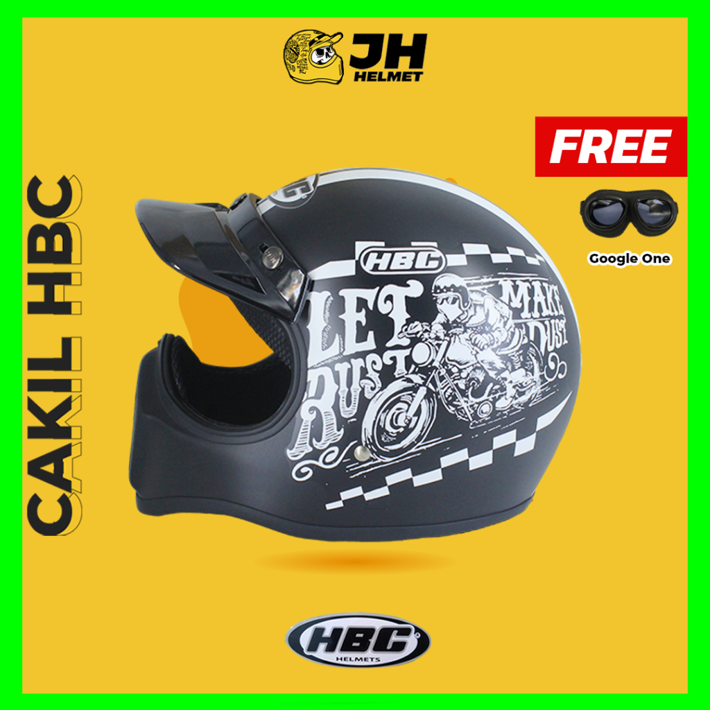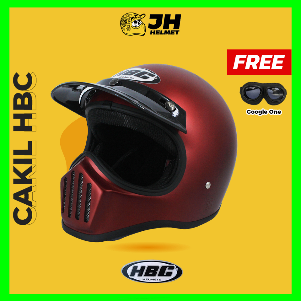 Helm Cakil HBC + FREE GOGGLE | Original 100% | GRATIS ONGKIR | Helm Retro | Full Face | Jual Helm