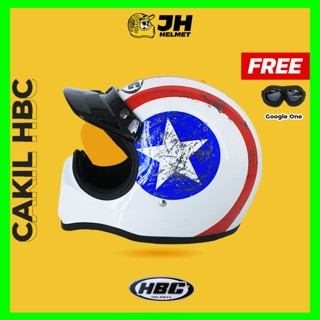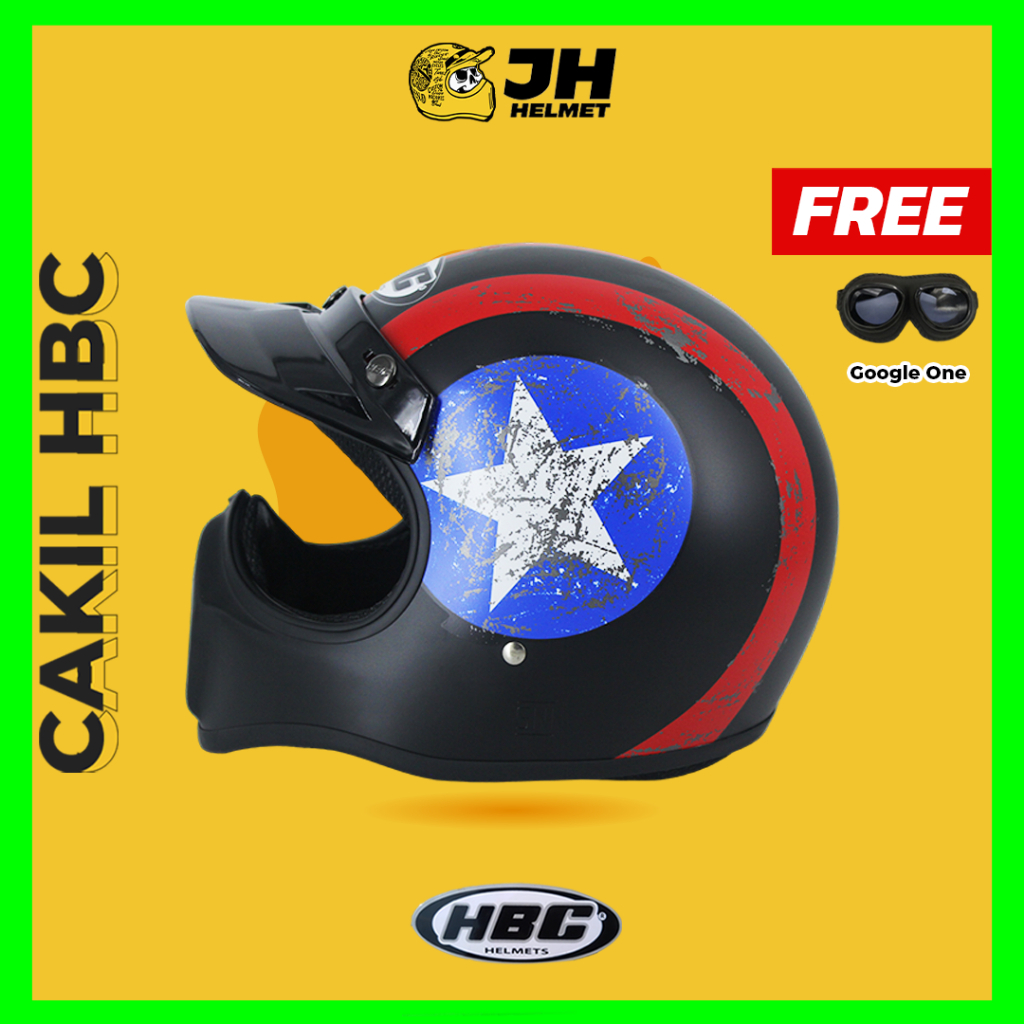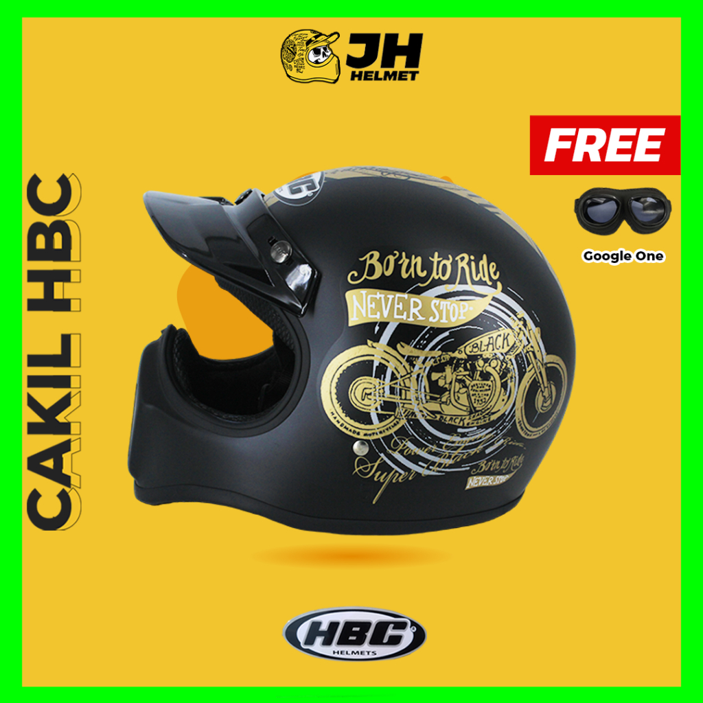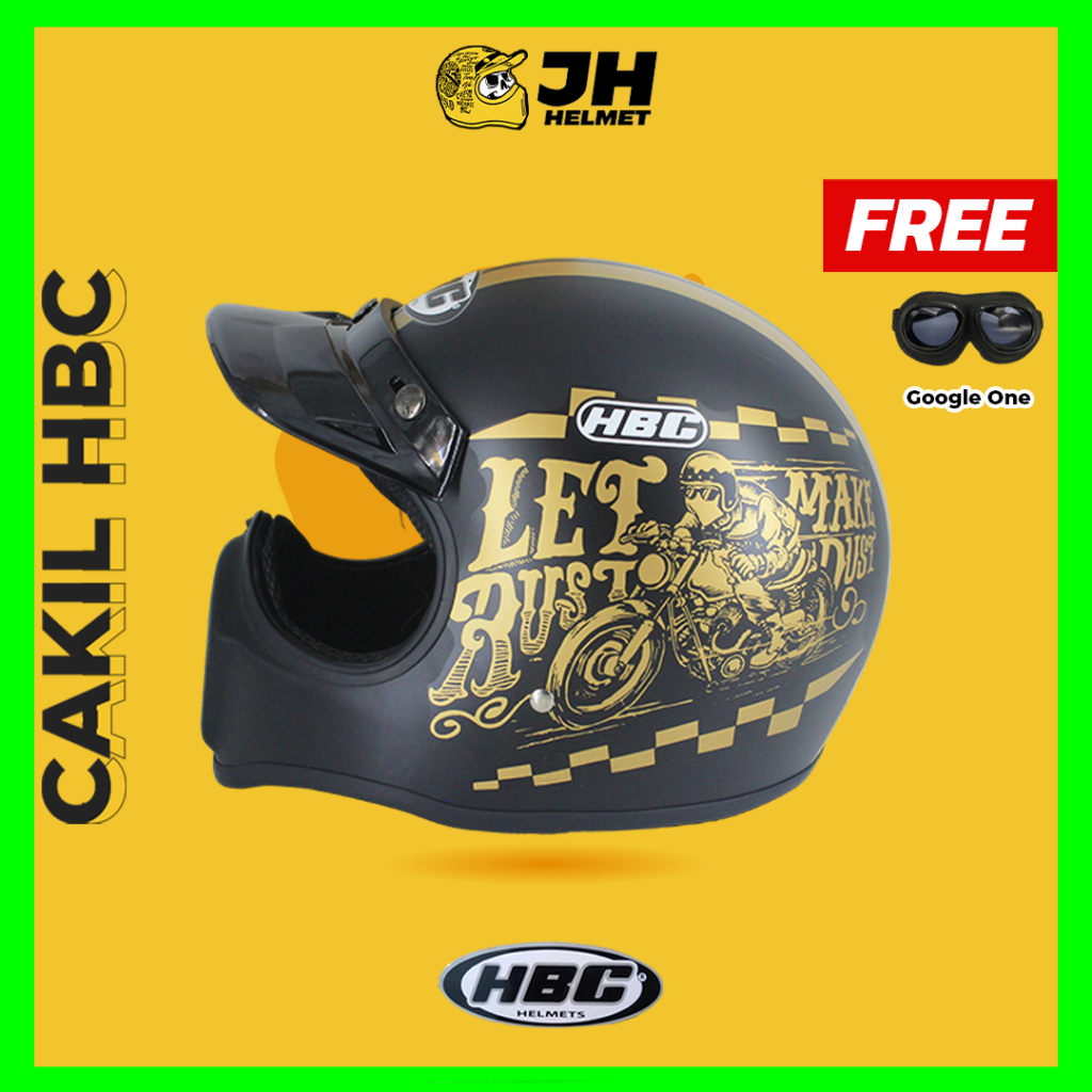 Helm Cakil HBC + FREE GOGGLE | Original 100% | GRATIS ONGKIR | Helm Retro | Full Face | Jual Helm
