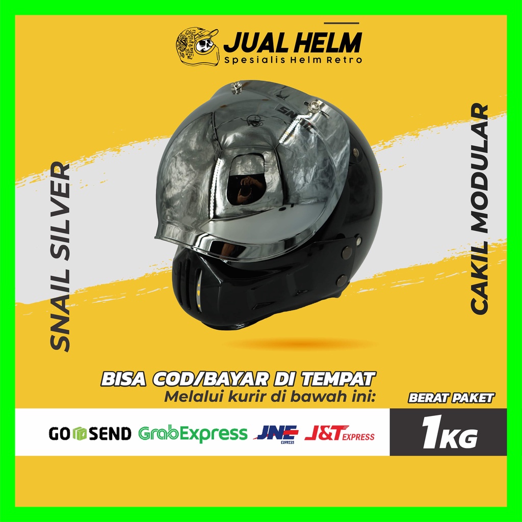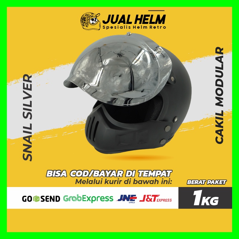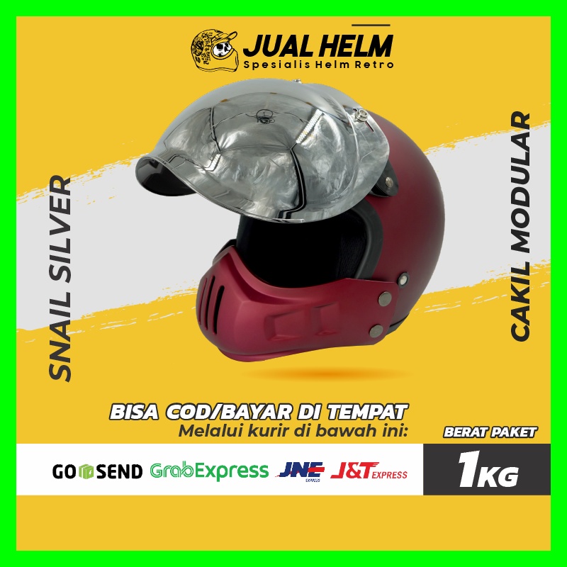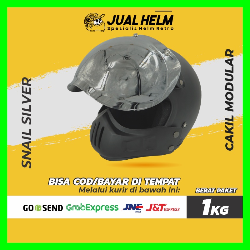 Helm Cakil Modular + Visor Snail Silver | Helm Retro | Full Face | Jual Helm