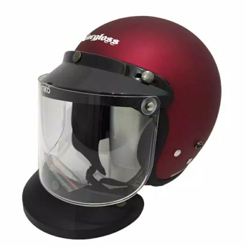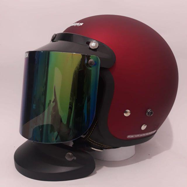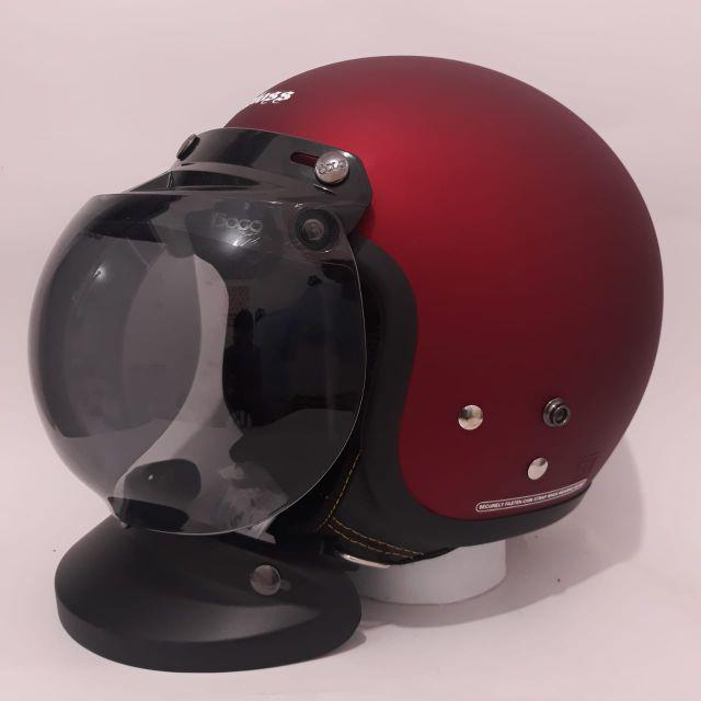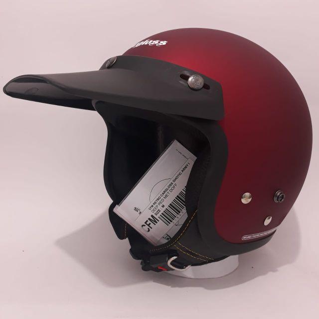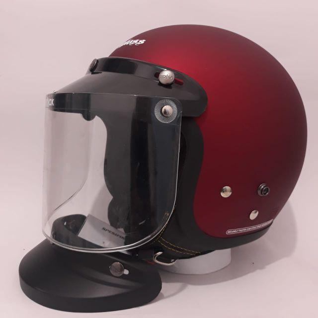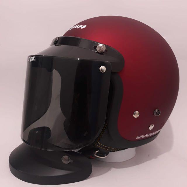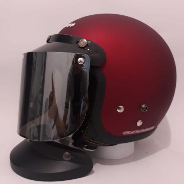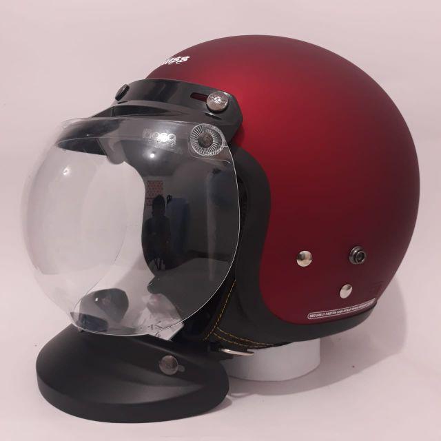 Helm Cargloss Retro Merah Maroon Doff Set kaca datar kaca cembung