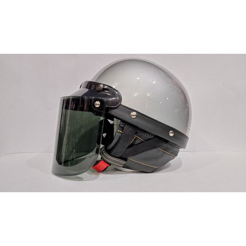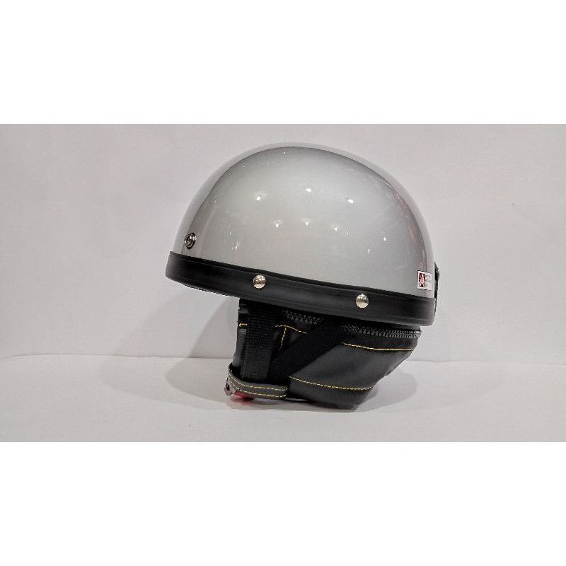 Helm Chips Cetok Bogo Setengah Retro Silver Gloss- Helm pilot Vintage Vespa-Helm Chips SNI-Helm Chips Resleting-Helm Chips Bogo
