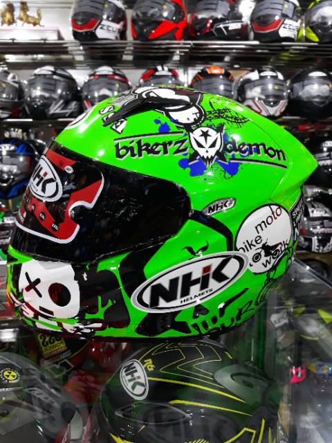 Helm Full Face NHK GP-Tech Motif Speak Up Green Fluo / Black