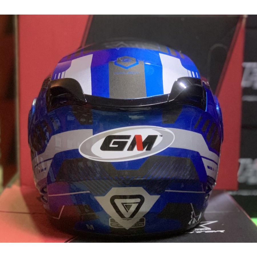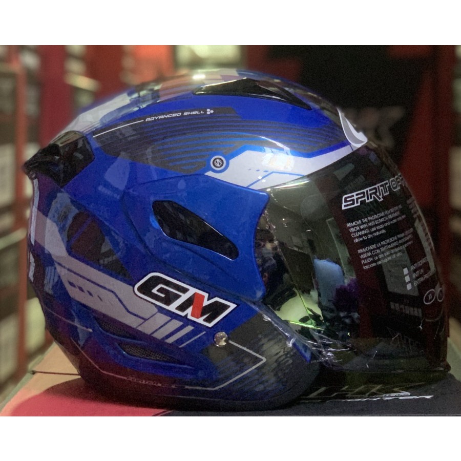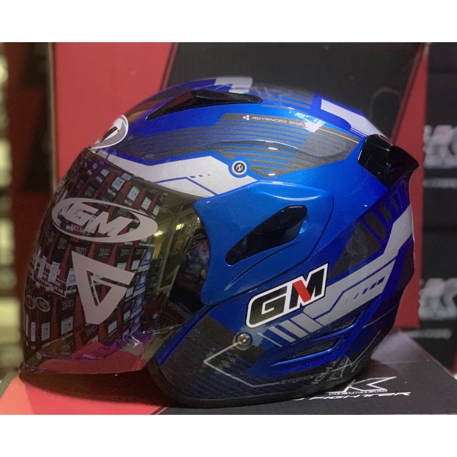 Helm GM Fighter Vender Blue Metalic Silver Half Face Single Visor - Helem Motor SNI DOT Touring Dewasa Pria Wanita Cewek Cowok Helmet Keren Terbaru Original