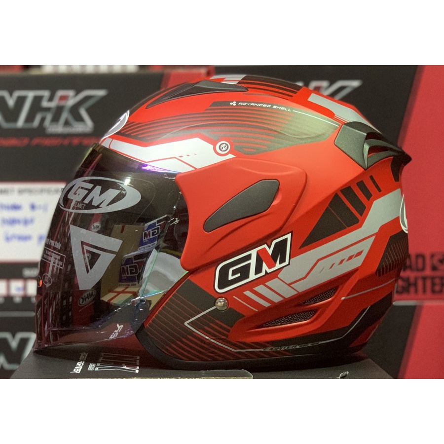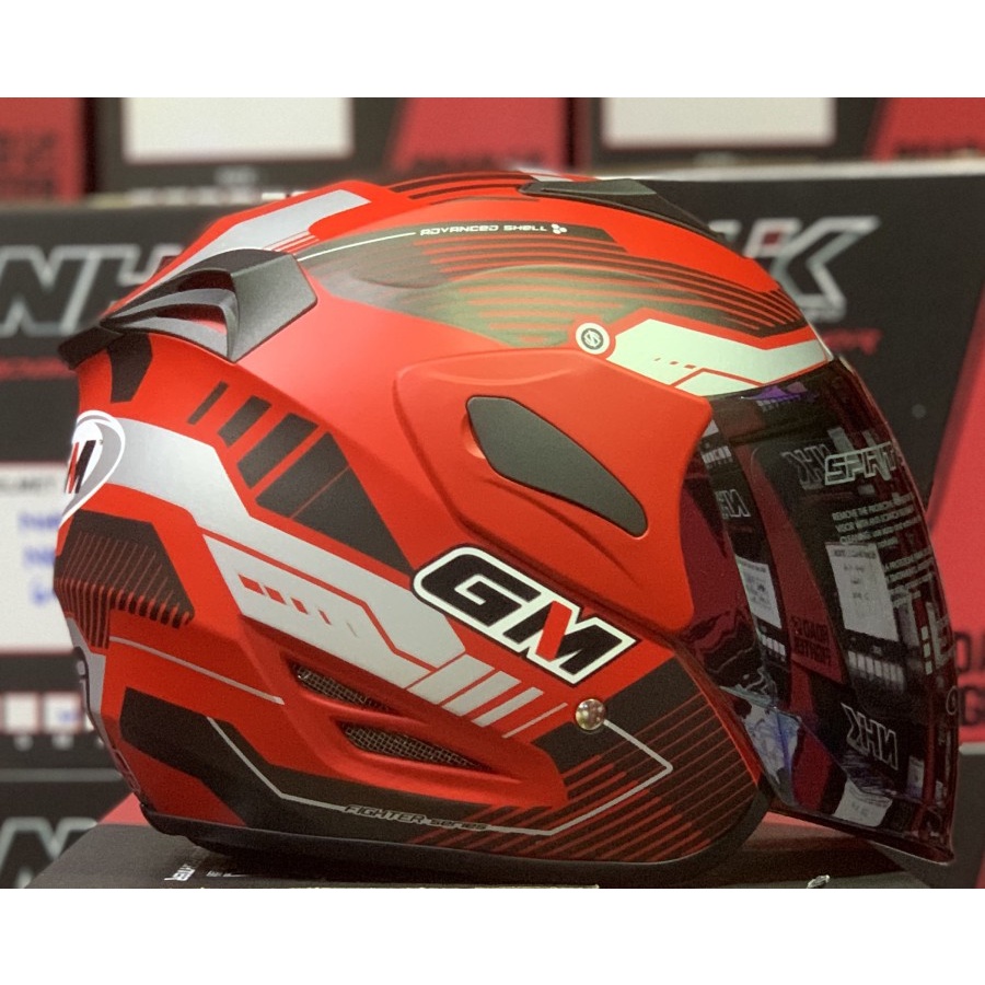 Helm GM Fighter Vender Red Doff Silver Merah Dop Abu Half Face Single Visor - Helem Motor SNI DOT Touring Dewasa Pria Wanita Cewek Cowok Helmet Keren Terbaru Original