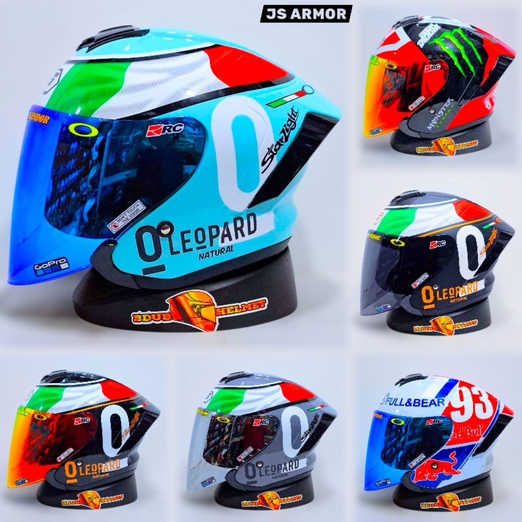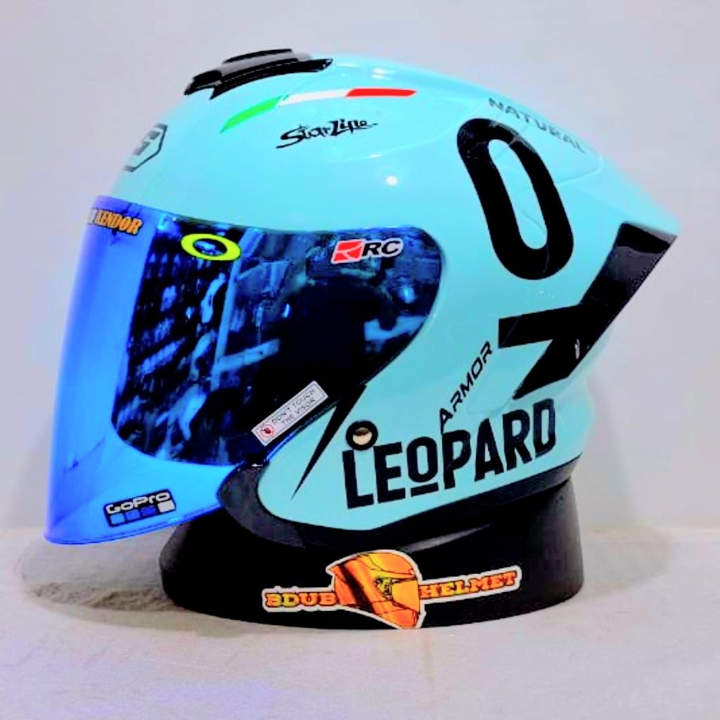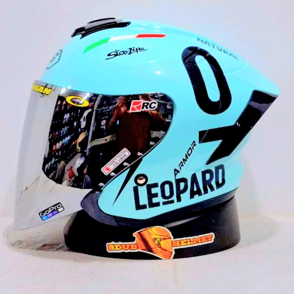 Helm JS Armor Leopard blue paket ganteng spoiler 3D