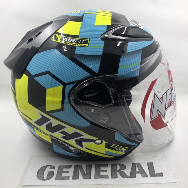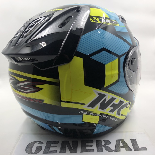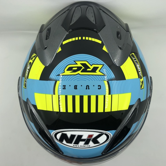 Helm NHK R6 Motif Cube Black Yellow Light Blue Hitam Kuning Biru Muda