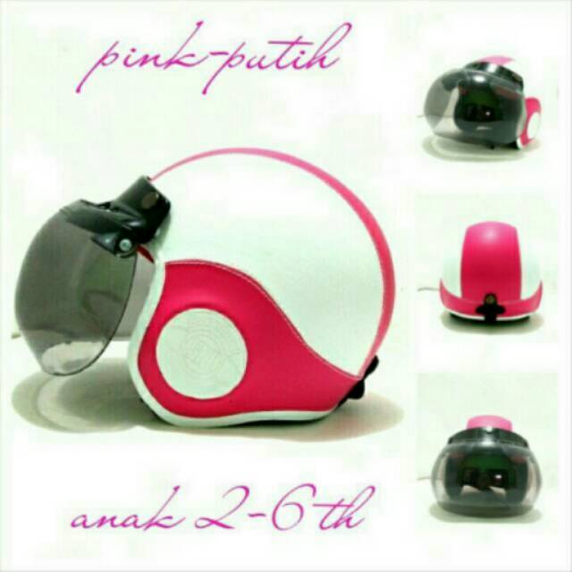 Helm Pororo Anak Pink Putih Kaca Bogo Ori