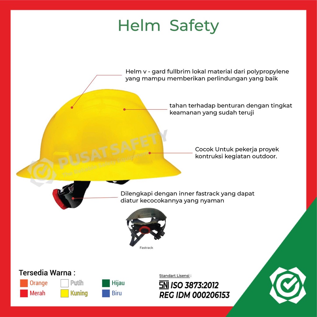 Helm Proyek Kerja Safety MSA V-Gard Fullbrim Lokal With Fastrack