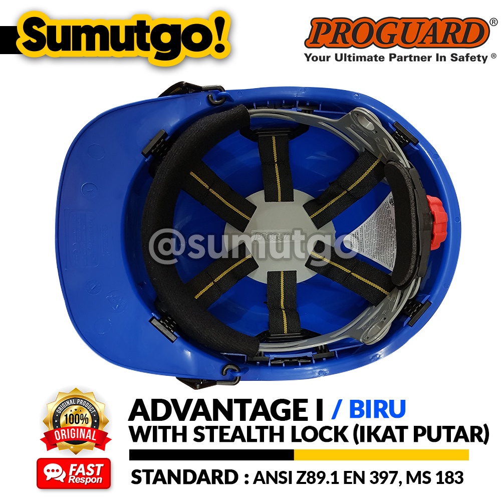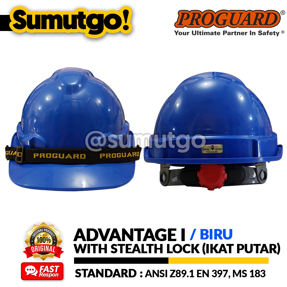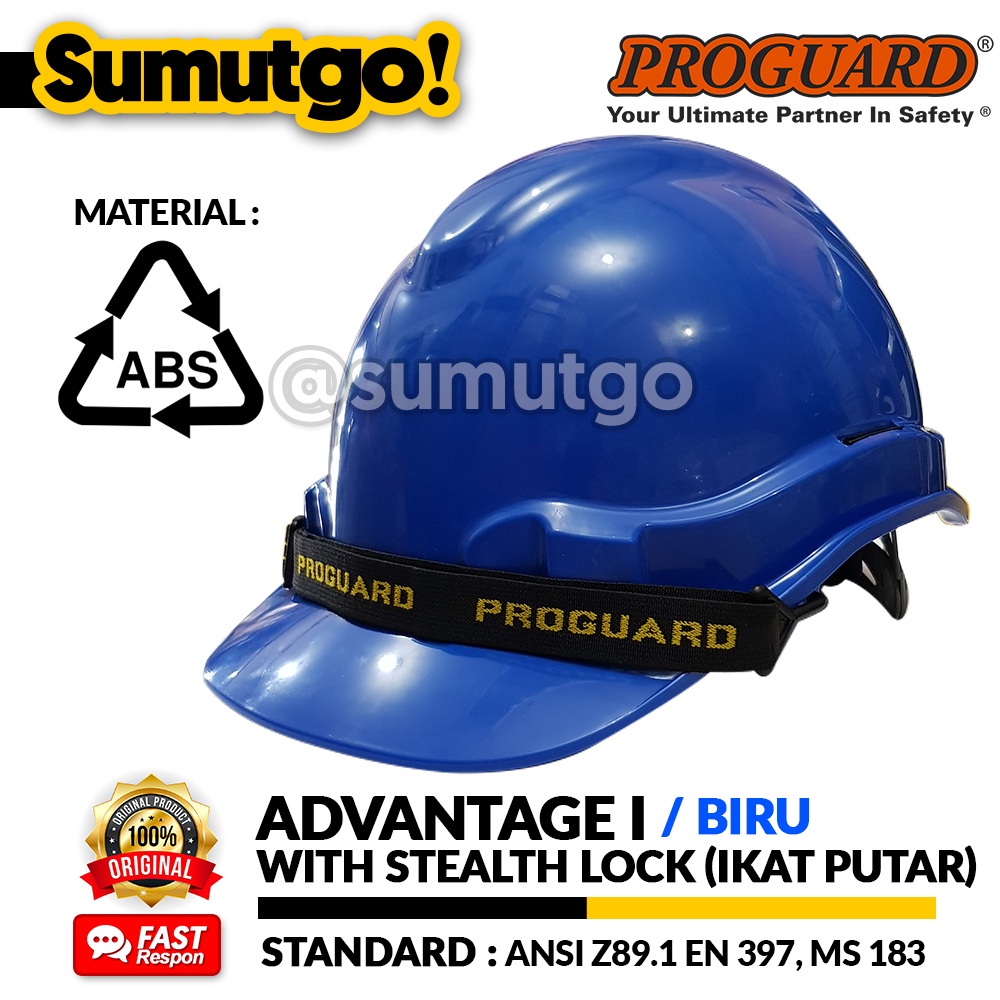 Helm Safety Proguard Advantage 1 Biru + ikat Putar + Tali Dagu Karet / Blue Helm Proyek Safety Helmet Stealth Lock Wheel Track Fastrac Pabrik Kebun Industri Tambang Konstruksi PKL