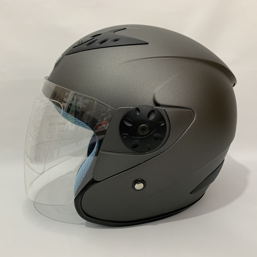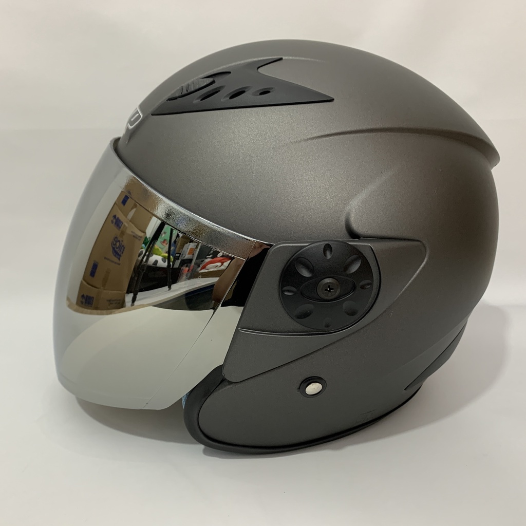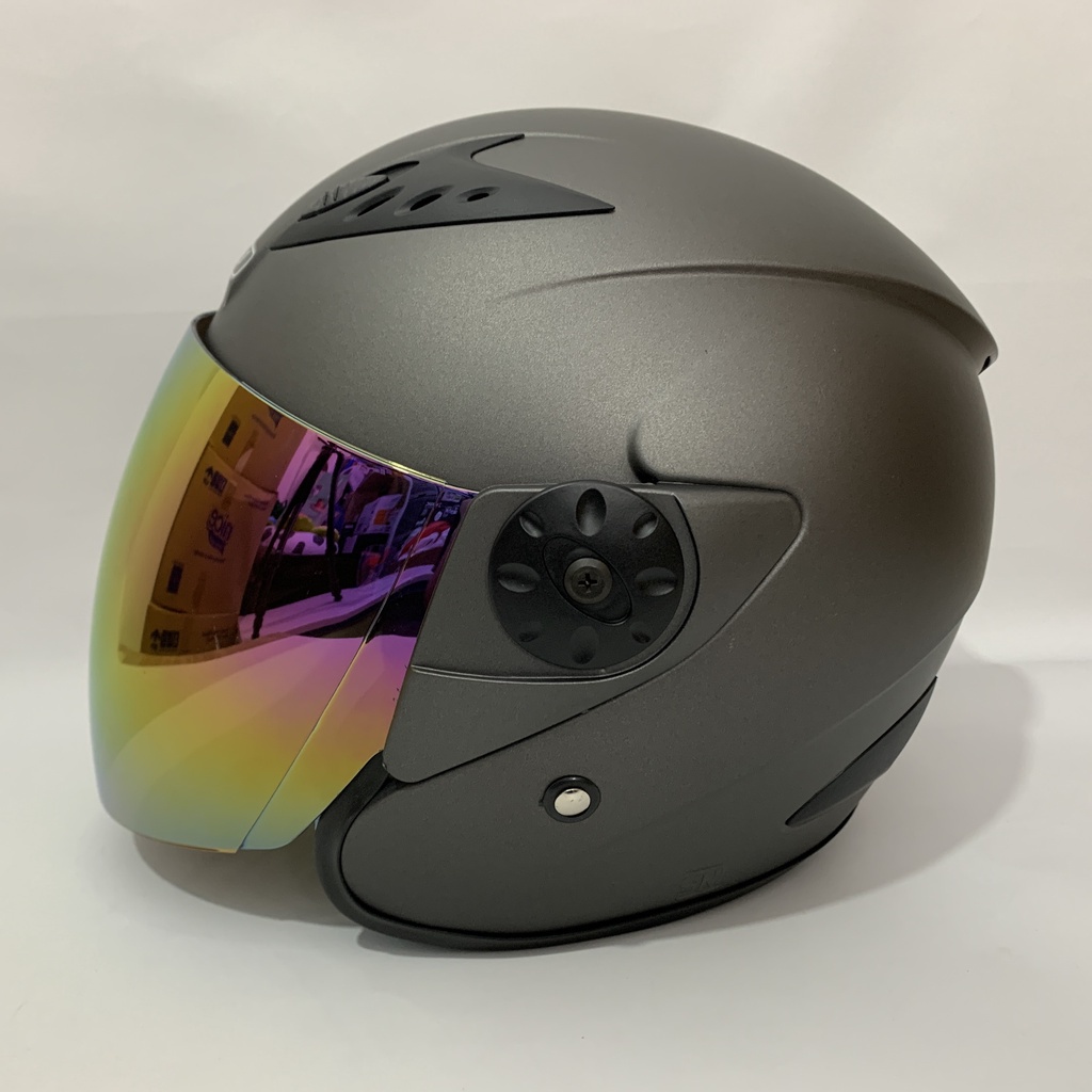 Helm Sepeda Motor Vision 2 Abu Abu Doff Polos Solid - Kaca Iridium Silver Pelangi - Helm Vision Double Visor - Helm Dewasa - Helm SNI - Helmet - Helem