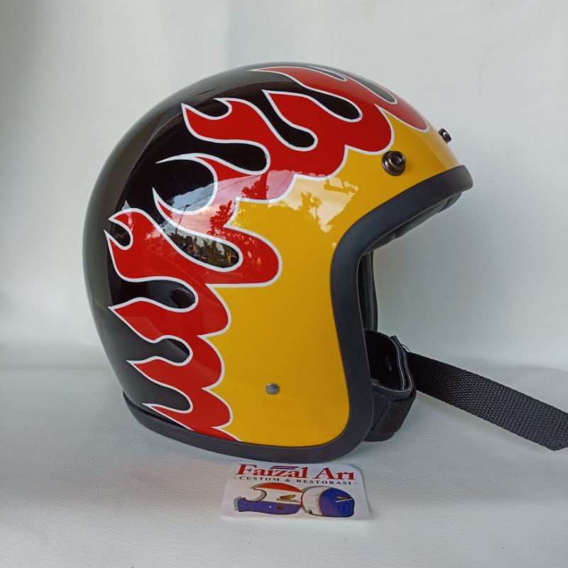 Helm Slim Head Custom Flame Api Jelek Patina