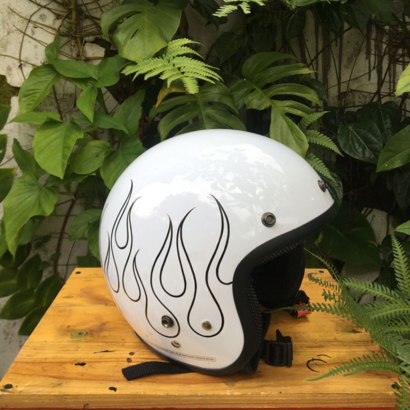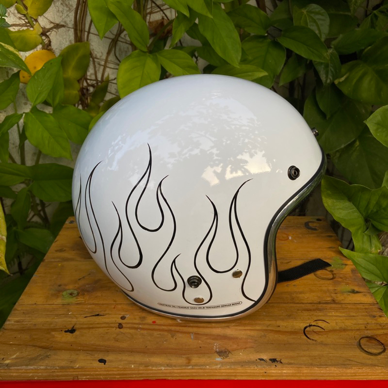 Helm bogo PUTIH custom api vespa justin beiber flame api hitam