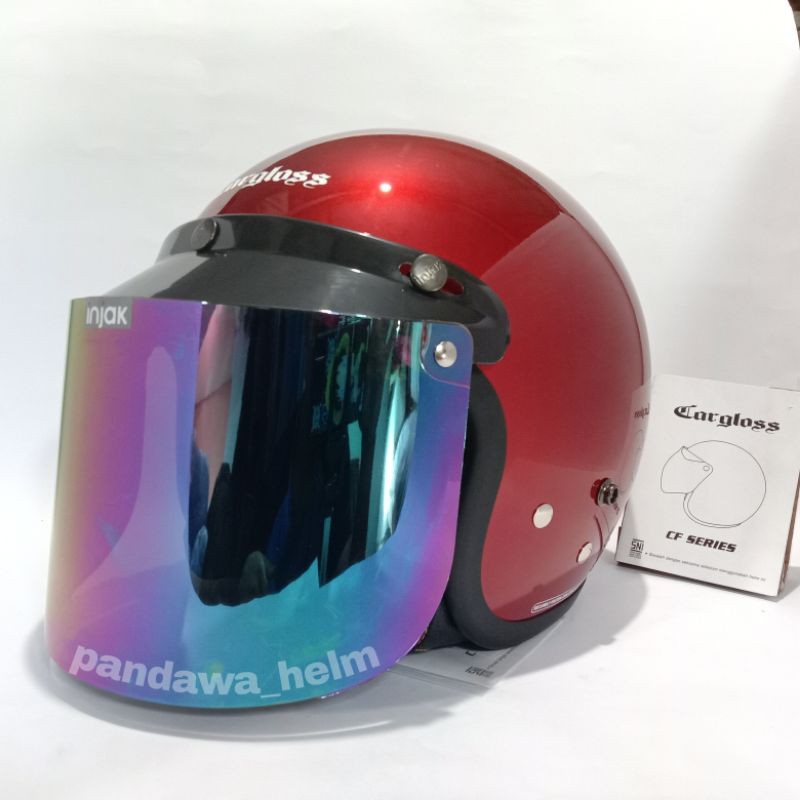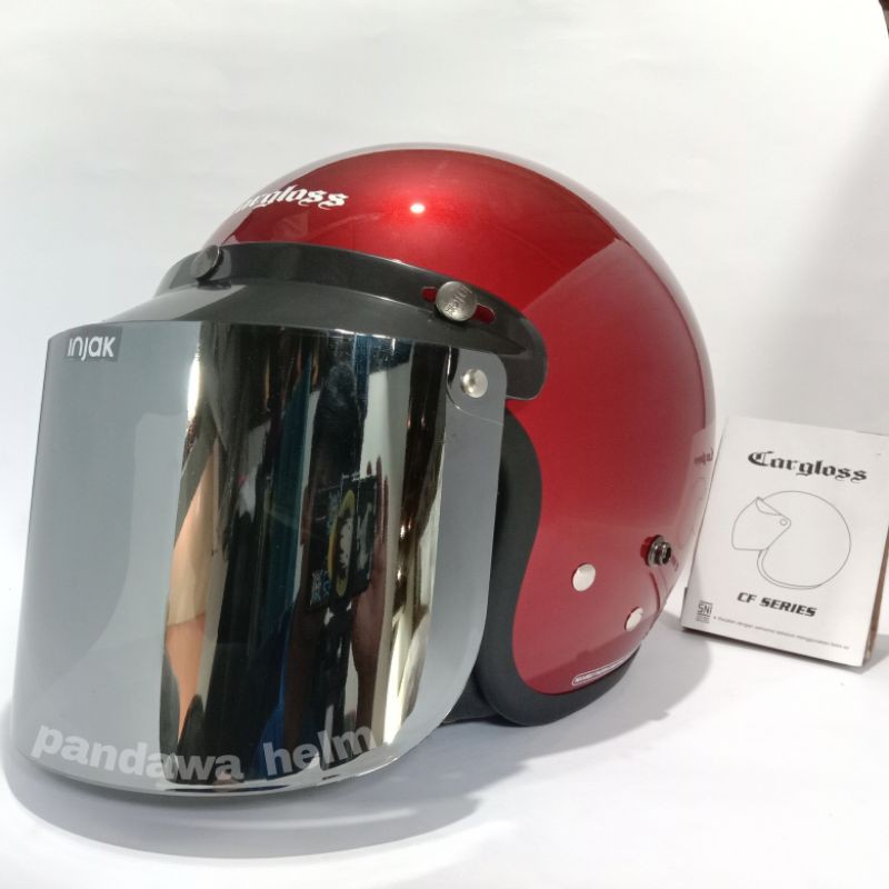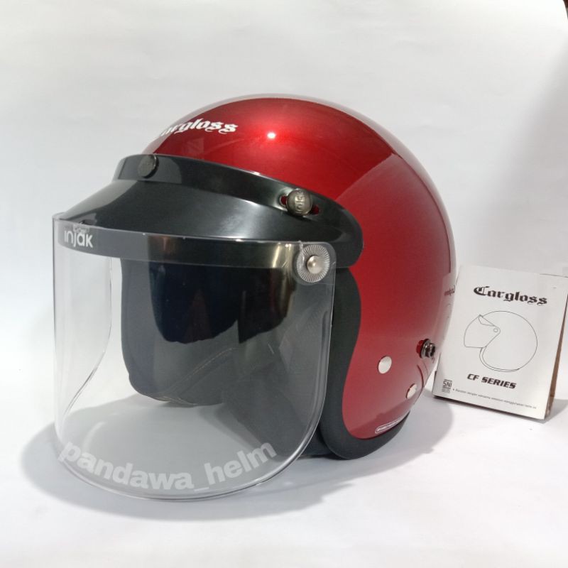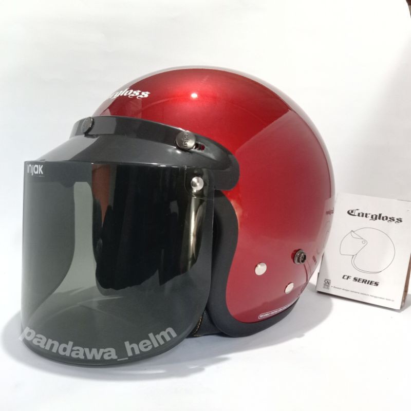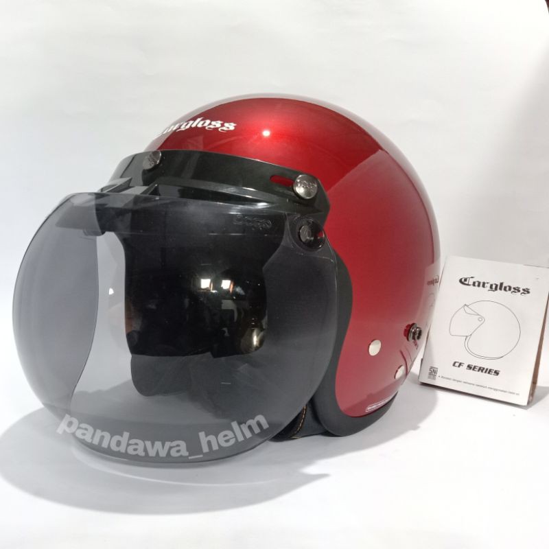 Helm bogo/retro cargloss merah marron set kaca datar/cembung/pet
