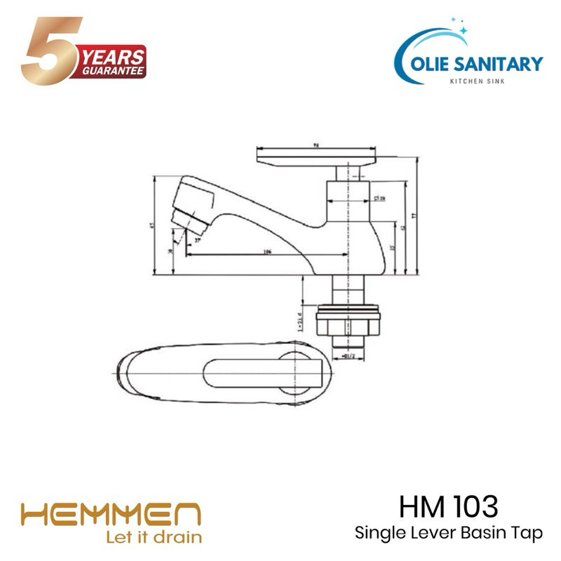 Hemmen HM 103 Keran Wastafel Sink Cuci Tangan Basin Meja Kran Air