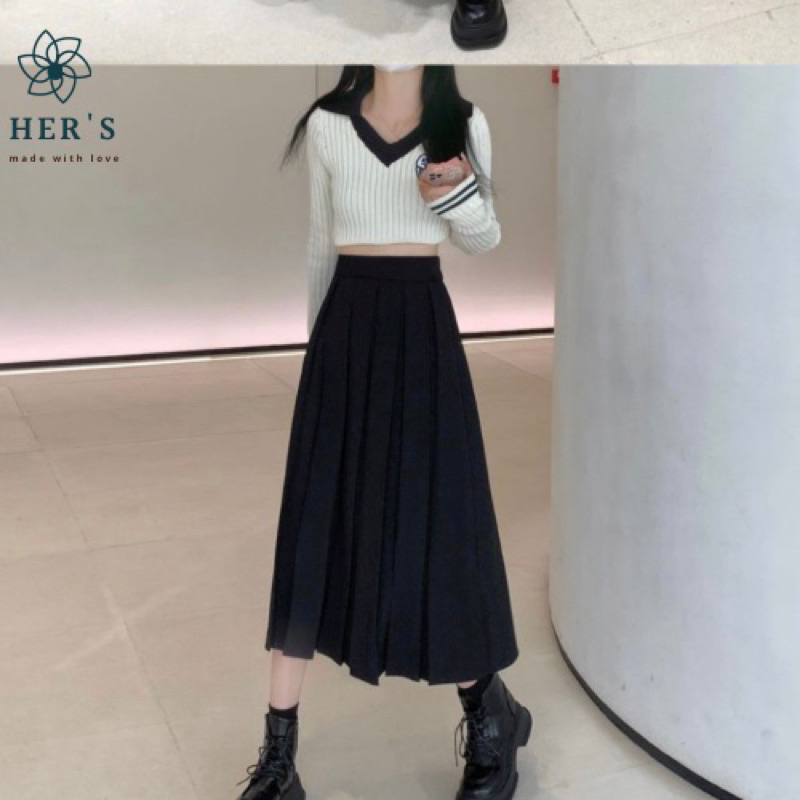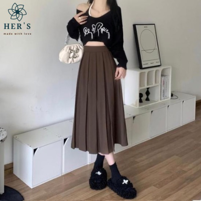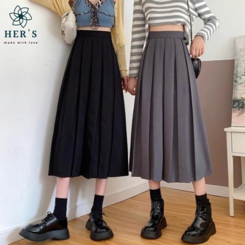 Her's - Keke Pleated Midi Skirt - Rok Lipit Wanita - Rok Lipat Polos - Rok Rempel Ala Korea