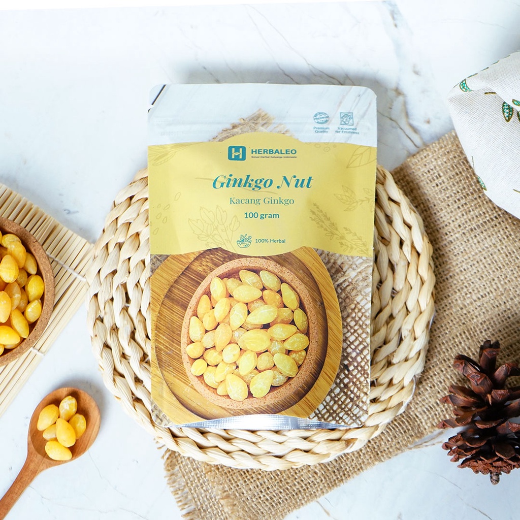 Herbaleo Ginkgo Nut Kacang Herbal 100g Membantu Melancarkan Peredaran Darah & Menutrisi Otak
