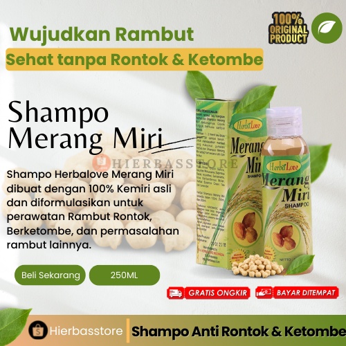 Herbalove Shampoo Merang Kemiri 250ML Shampo Rambut Anti Rontok Ketombe Sampo Penumbuh Rambut Cepat