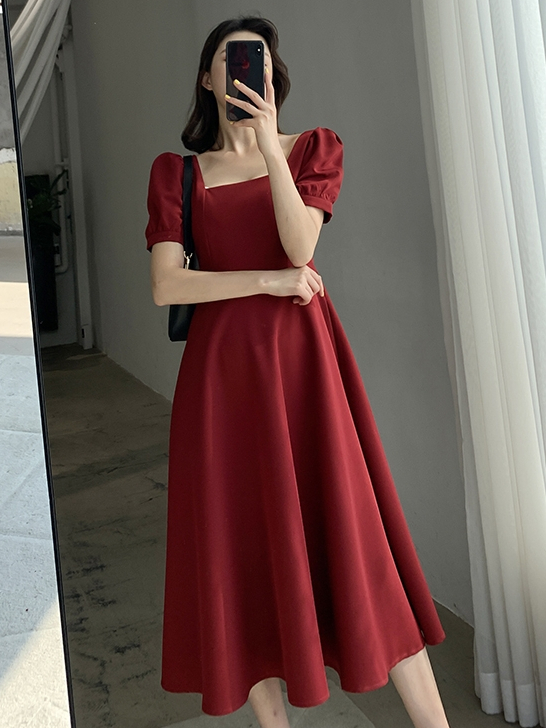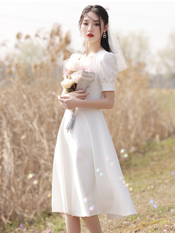 Hertha Duga baju midi dress putih panjang natal wanita kekinian muslimah korea style import kondangan wedding dress