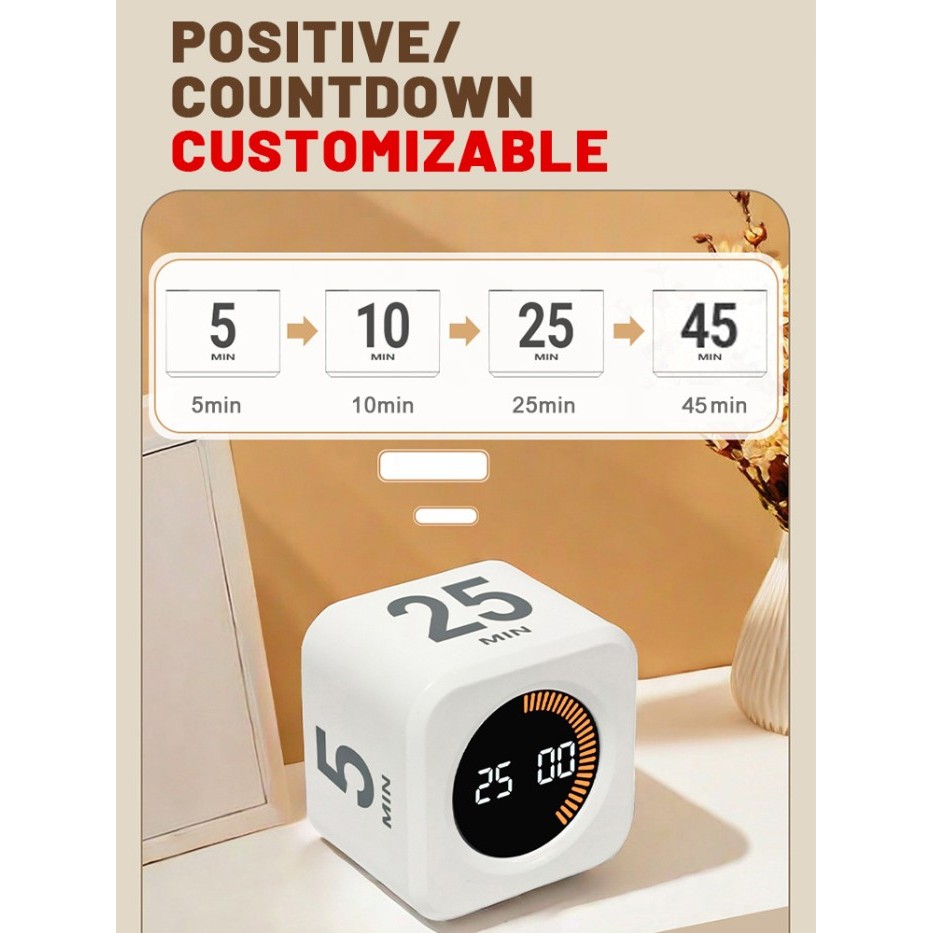 Hexagon Visual Flip Timer for kids Digital Study Pomodoro Cooking Timers Silent timing Magnetic