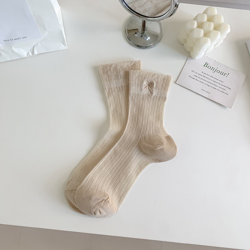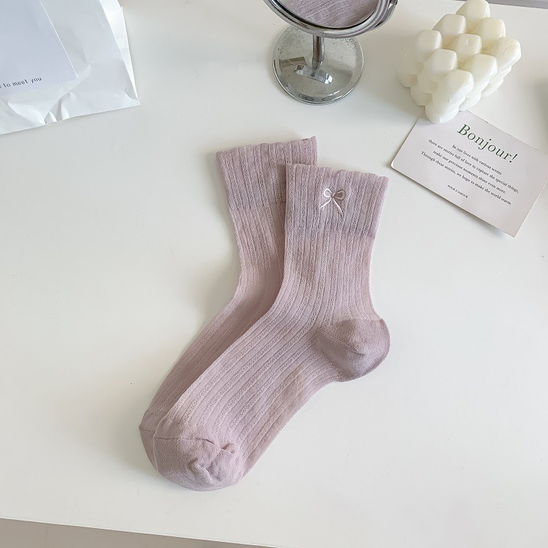 Hey Bliss - Thinny Coquette Bow Korean Socks / Sock / Kaos Kaki Korea Premium Transparant