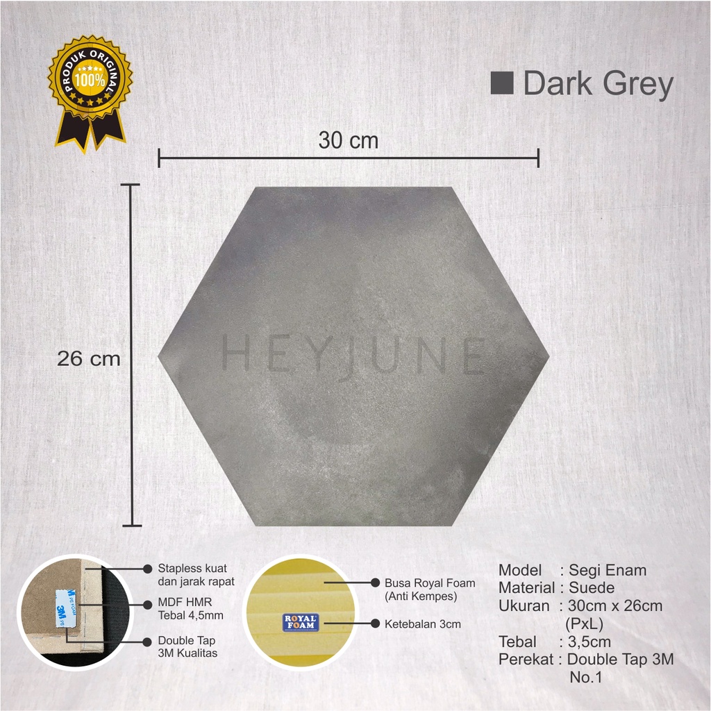 Heyjune - HeadBoard Hexagona (SegiEnam) | Headboard suede | Dipan Kasur | Wallpapper & Sticker Dinding | Headboard Wallpanel 3D Stiker Dinding | Bed Cover Foam Stiker Kasur