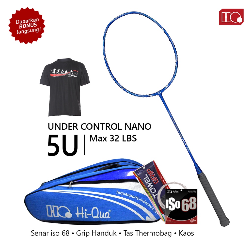 Hi-Qua Under Control Nano Raket Badminton Bulutangkis 5U Max Tension 32 Lbs Full Set