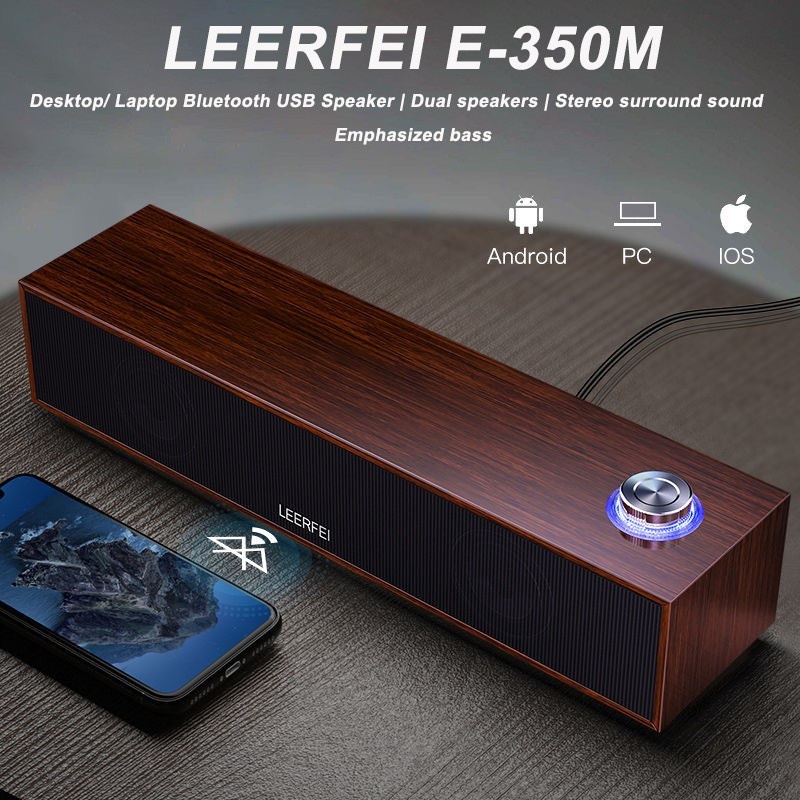 HiFi Bass Cinema Level Soundbar E350M Wood Wireless Bluetooth Speaker