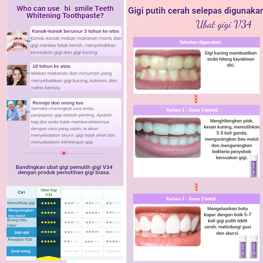 HiSmile V34 Teeth Whitening Colour Corrector hismile v34 pasta gigi v34 toothpaste hismile Pasta Gigi Teeth Whitening Kit Perbaikan Dan Gigi Putih Hapus