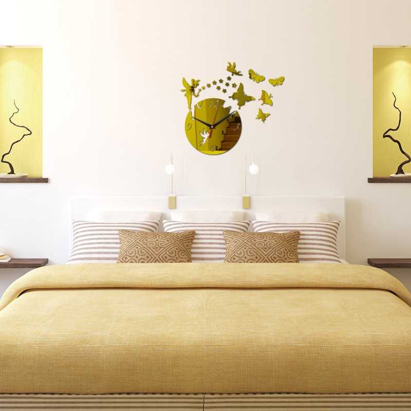 Hiasan Dekorasi Jam Dinding Aesthetic Tinkerbell Disney Kupu-Kupu Gaya Minimalis Quartz Creative Design Model Fairy