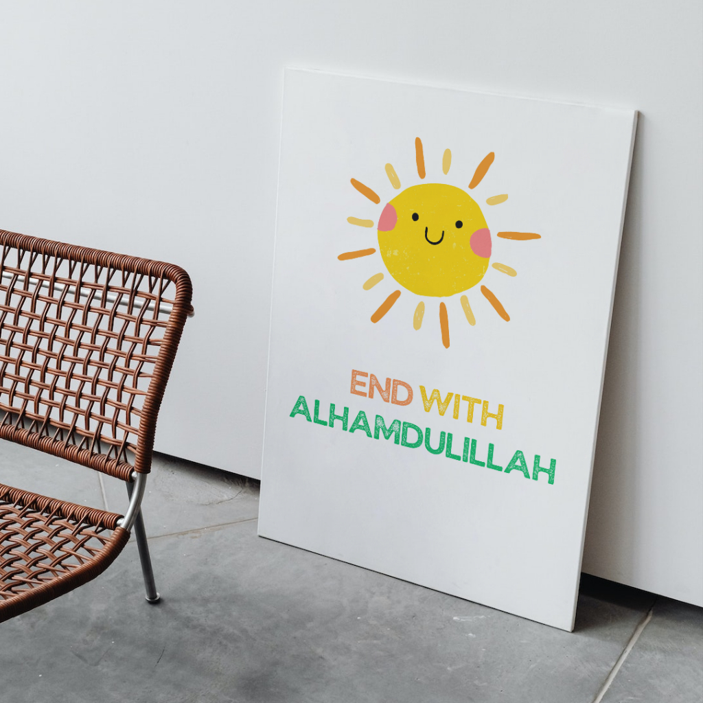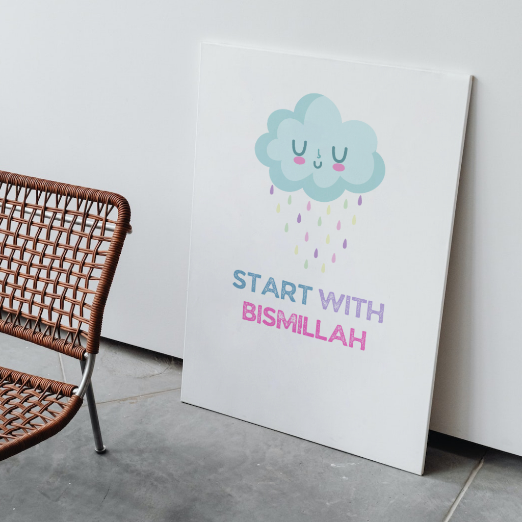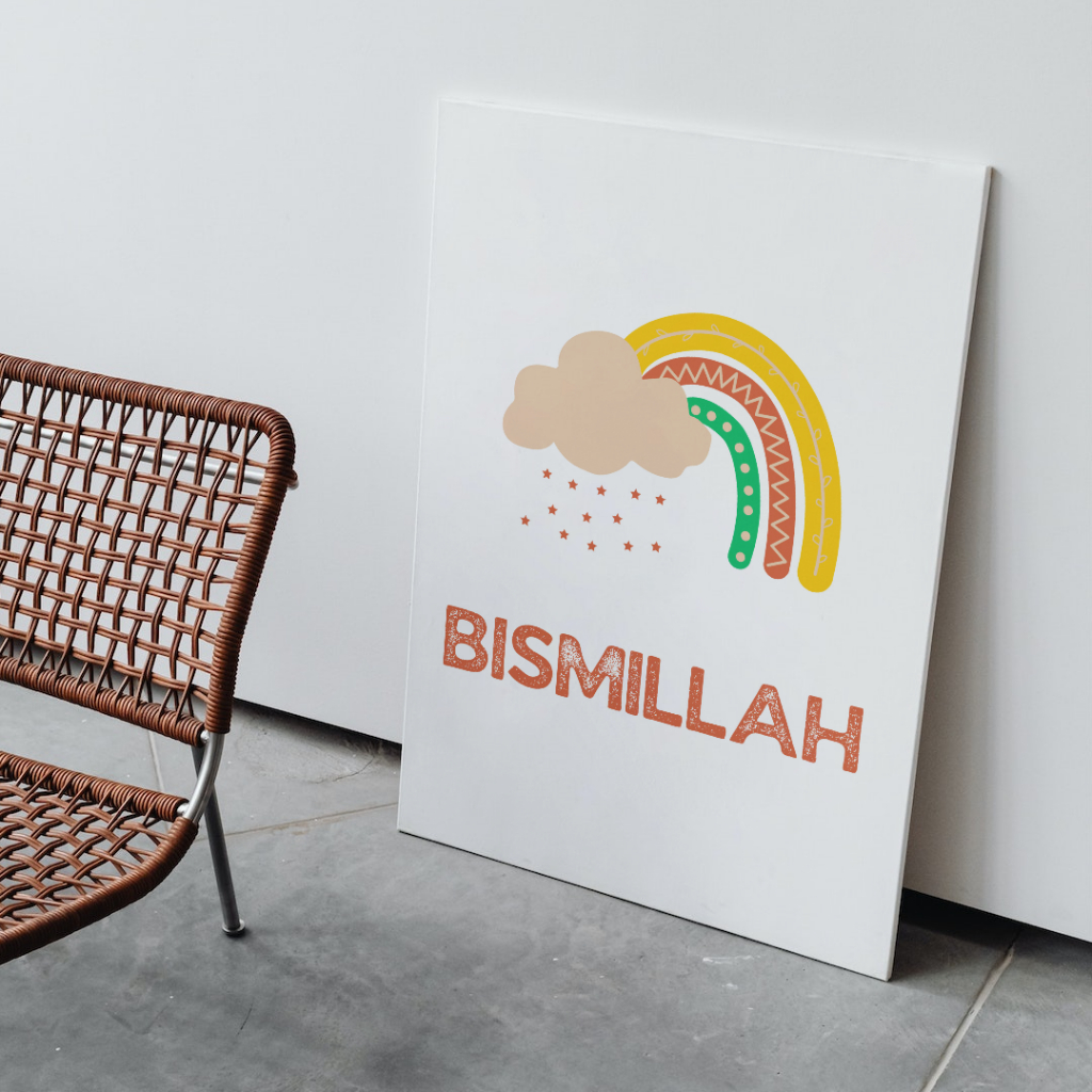 Hiasan Dinding Aesthetic 28x40 cm untuk Kamar Tidur Anak Wall Decor Kaligrafi Islamic Alhamdulillah Rainbow Moon Sun Clouds Pelangi Bismillah K11