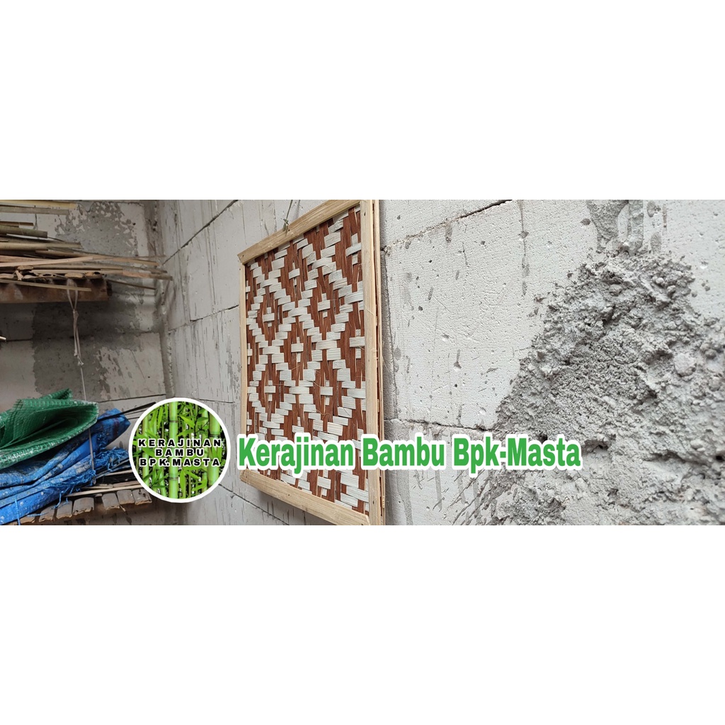 Hiasan Dinding Anyaman Bambu Dekorasi Rumah Motif Warna Coklat Putih Ukuran L 50cm P 50cm