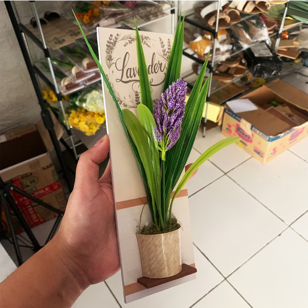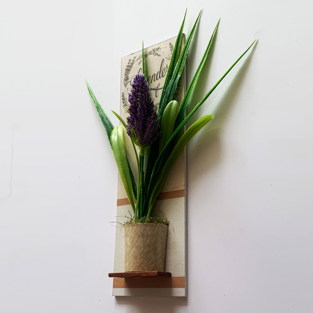 Hiasan Dinding Bunga Lavender Artificial dengan Ambalan, Pajangan Dinding Praktis dan Mudah Dipasang