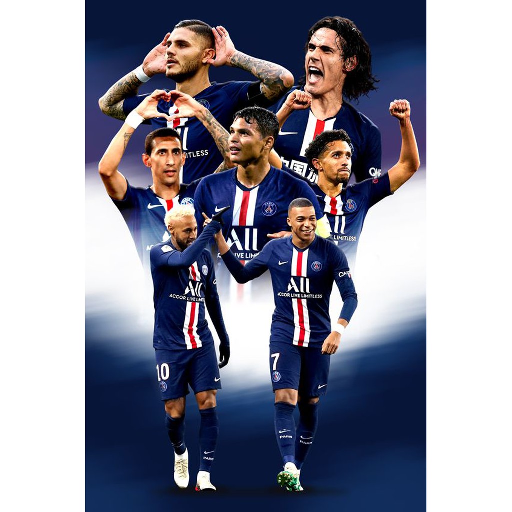 Hiasan Dinding Club Sepak Bola PSG Lionel Mesi Neymar Poster kayu pajangan kamar