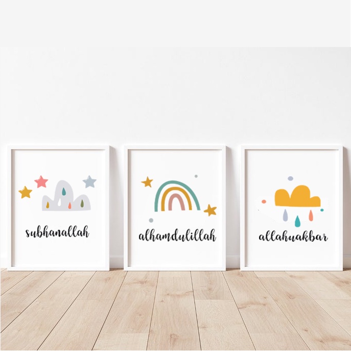 Hiasan Dinding Kamar Tidur Aesthetic Islami - Pajangan Kamar Tidur Anak Islami Subhanallah Alhamdulillah Allahu Akbar Minimalis Ukuran 20x30