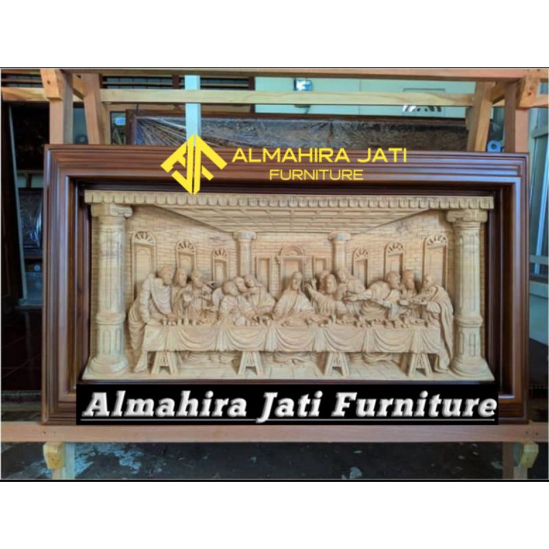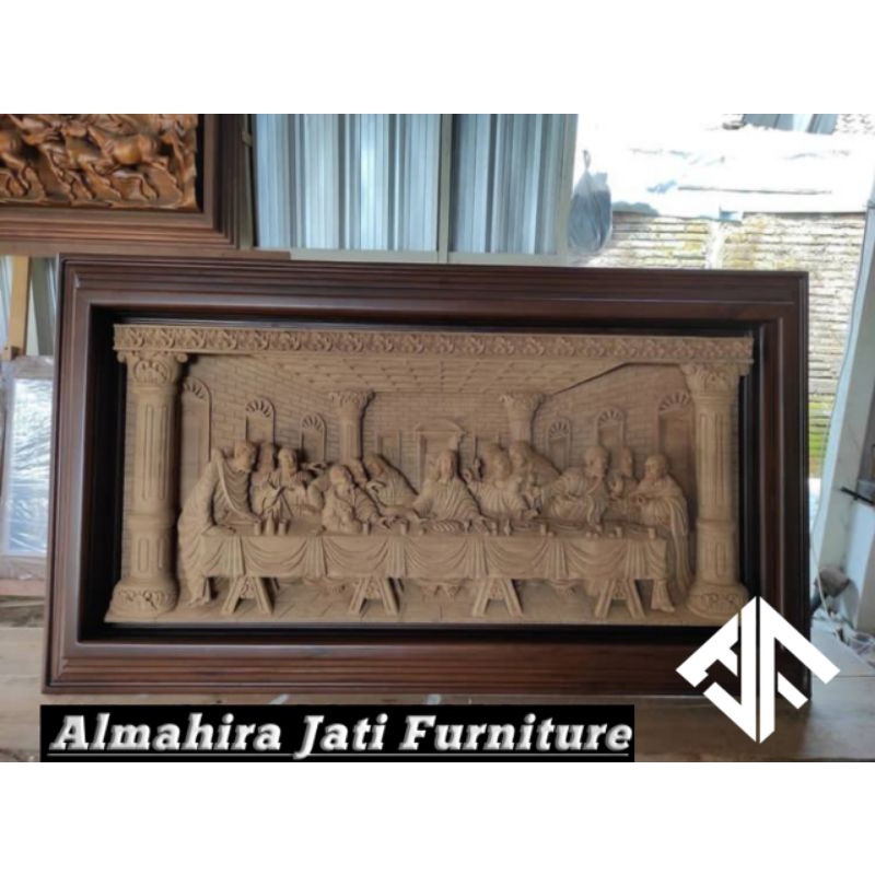 Hiasan Dinding Karya Seni Ukir Relief 3D Motif Perjamuan Suci Kudus / Ukiran Relief 3D Kayu Jati
