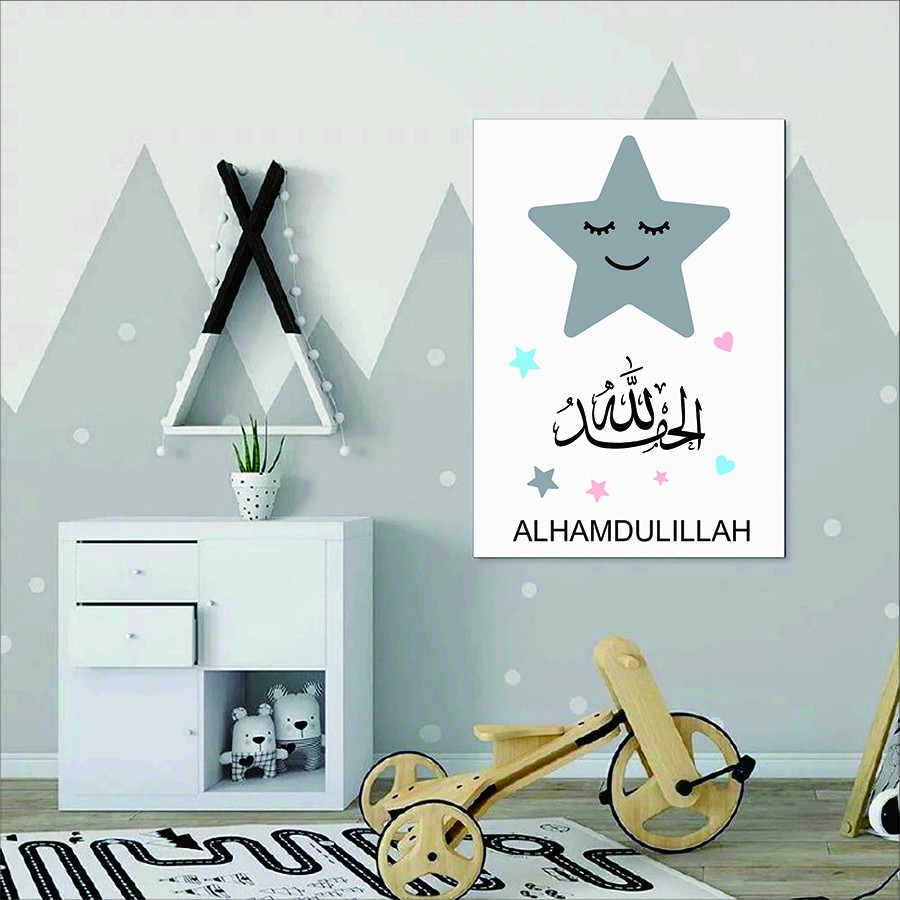 Hiasan Dinding Kayu Poster Kayu Hiasan Pajangan Dinding Kamar Anak Awan Bulan Bintang Smile