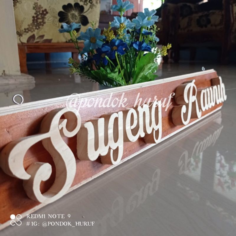 Hiasan Dinding Kayu Sugeng Rawuh Wilujeng Sumping Pajangan Kayu Dekorasi Huruf Kayu 3D