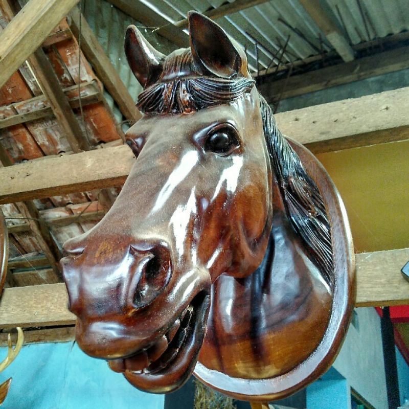 Hiasan Dinding Patung Kayu Patung Kepala Kuda