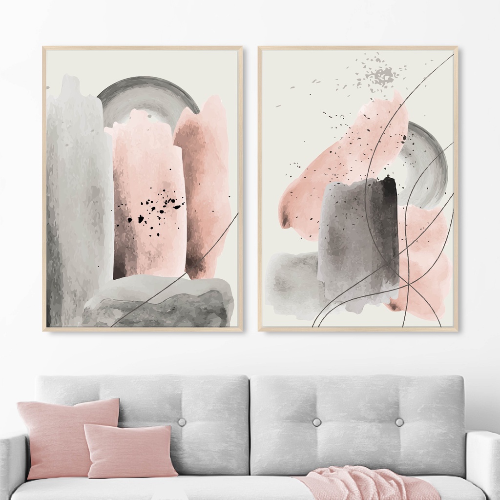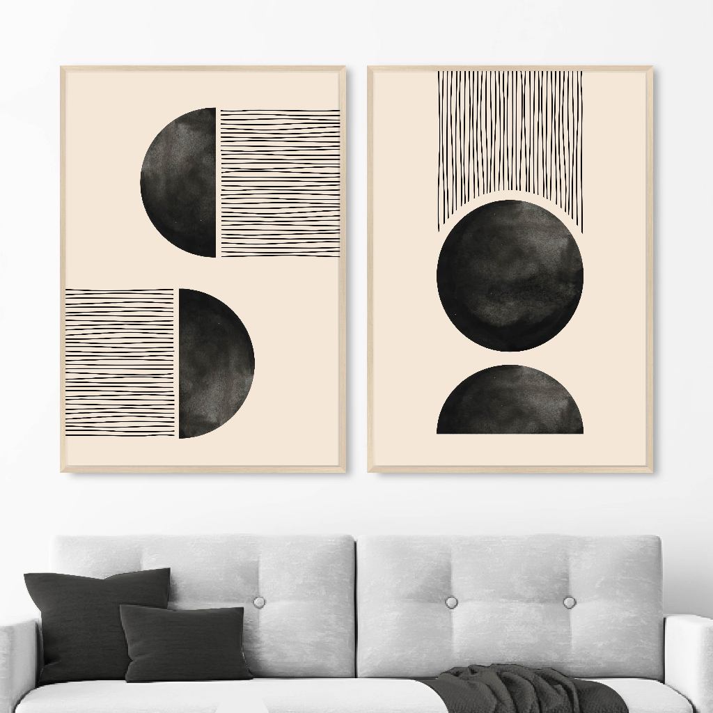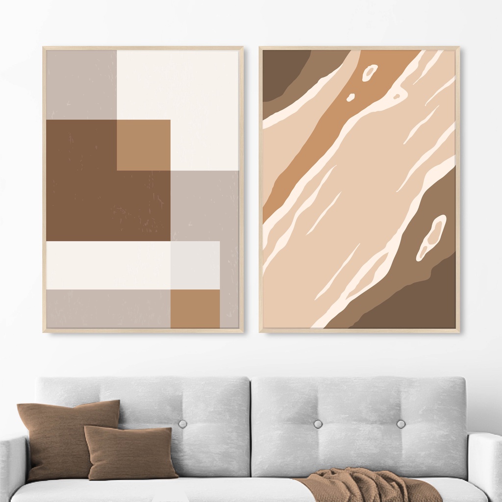 Hiasan Dinding Ruang Tamu Minimalis 80x57cm & 40x57cm INCLUDE FRAME - GEOMETRIC MINIMALIST EARTH TONE DESIGN - Wall Decor Ruang Tamu Kamar Pajangan Rumah Lukisan Art Canvas HIASAN DINDING Rumah Home Decor Aesthetic