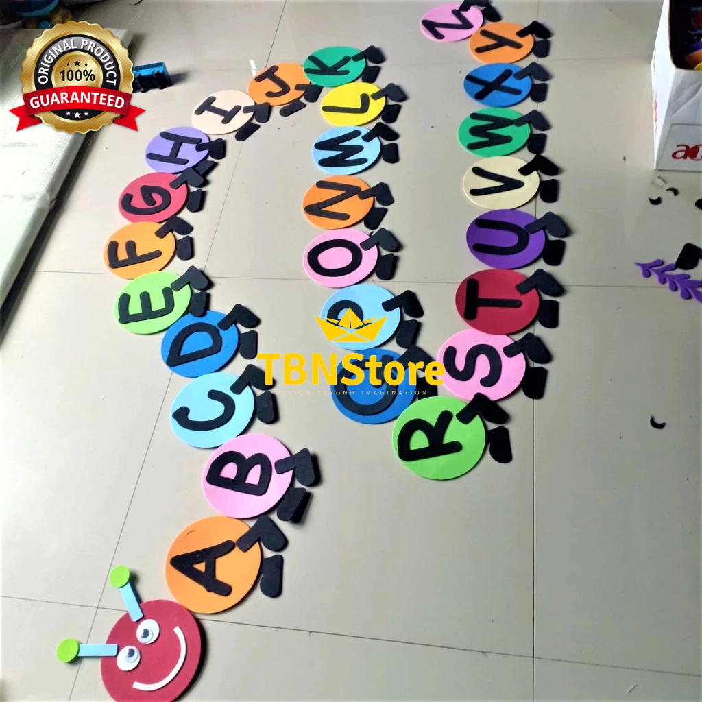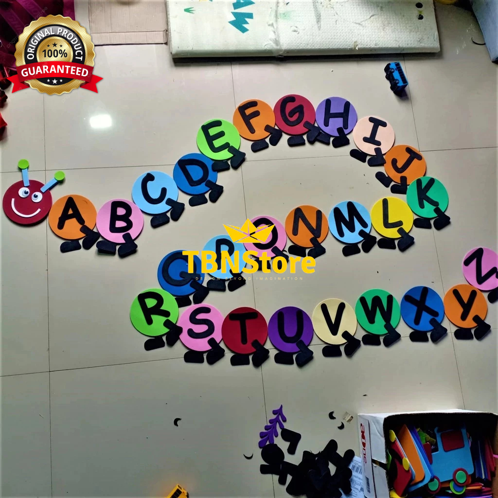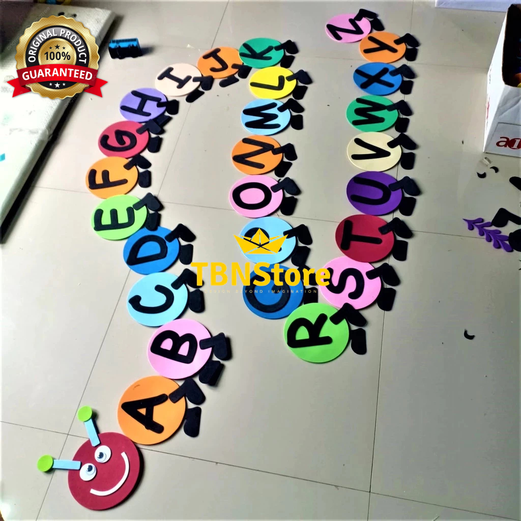 Hiasan Kelas ABJAD 26 Huruf A-Z Bentuk Ulat PAUD TK SD Pojok Baca, Sudut Baca Tempat Bermain