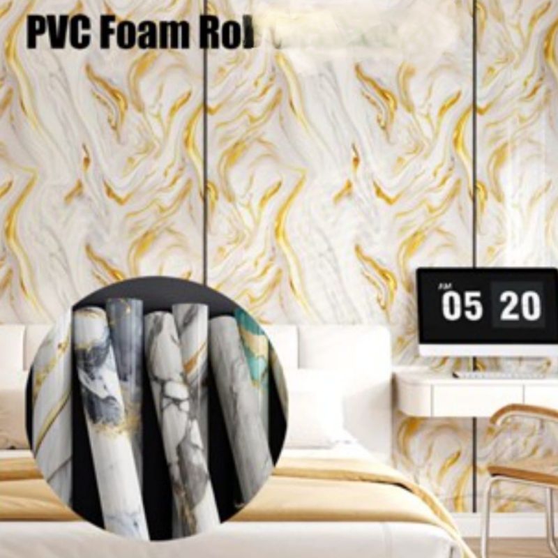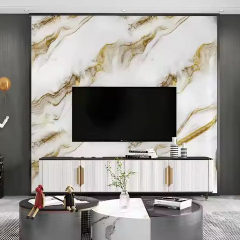 Wallpaper Sticker Dinding Vinyl Pvc Marmer Glossy Mewah Elegant Kekinian Ukuran 120 cm x 280 cm Tebal 2, 5 ml